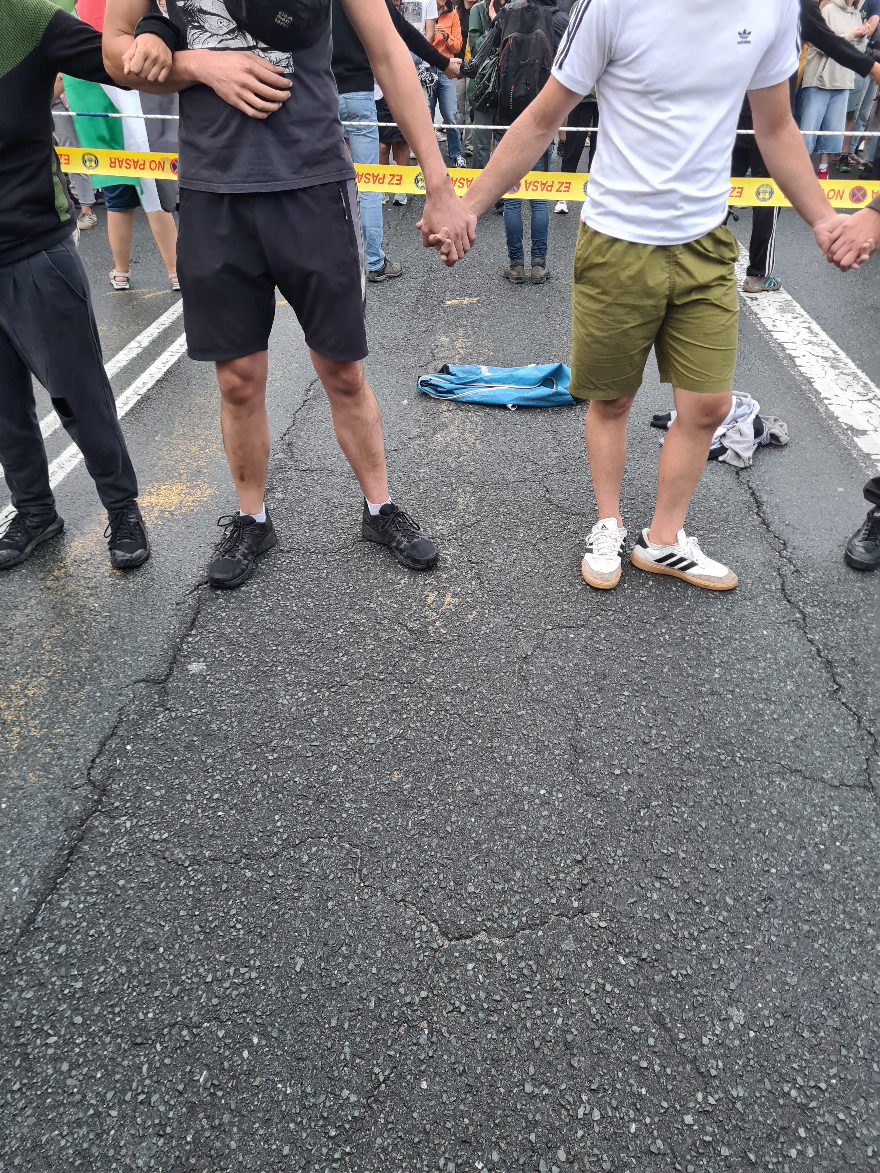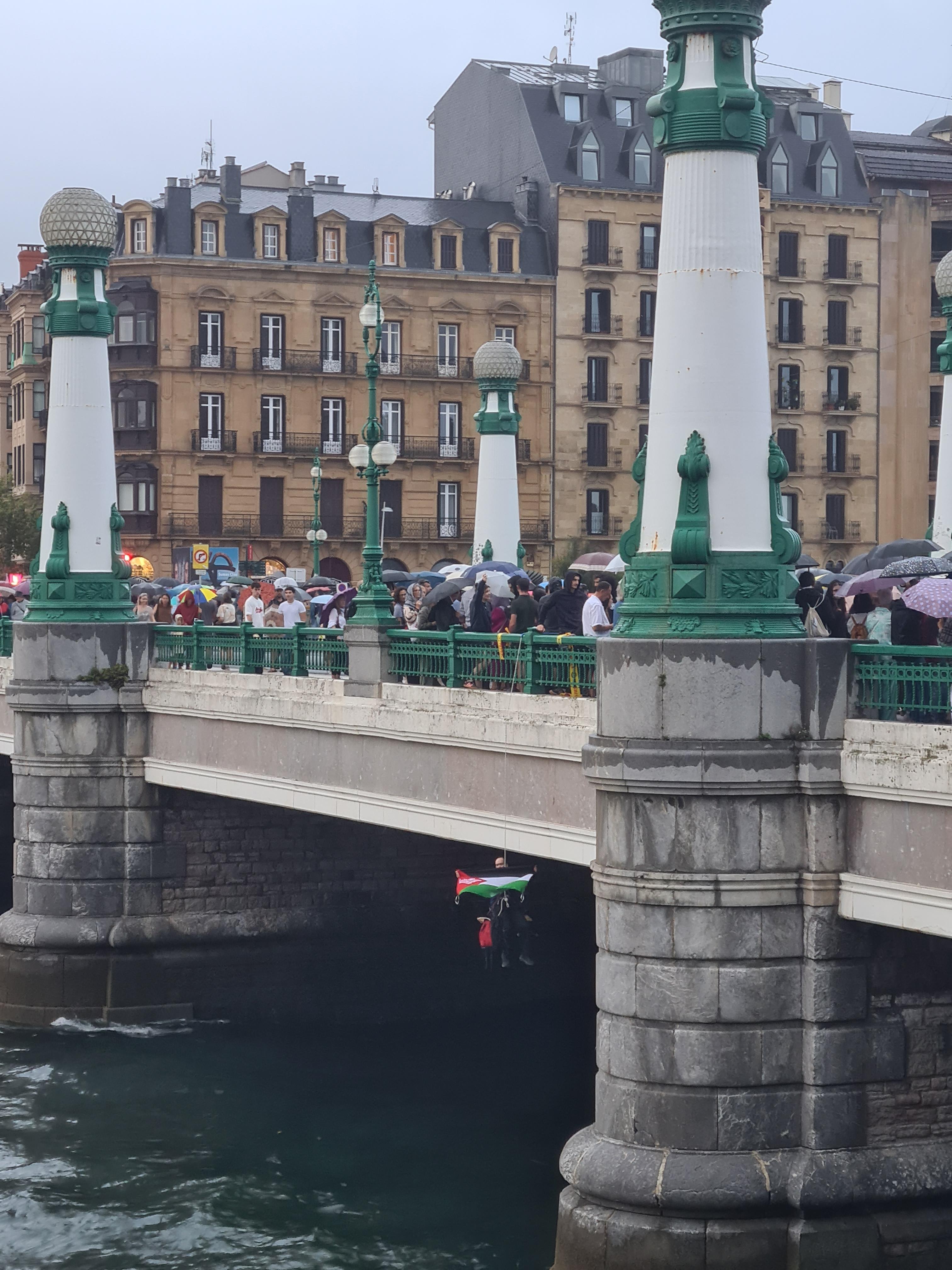 Joan den larunbatean, bi mobilizazio jendetsu egin ditu Palestinarekin Elkartasuna plataformak, palestinar erresistentziaren alde eta Israelgo Estatu genozidaren kontra. Zinemaldi bete-betean, Donostian izan zen manifestazio bat hilaren 20ko arratsaldean: Saguesetik abiatu eta Kursaaletik igaro ziren manifestariak, eta Zurriolako zubira iristean, bi pertsona zintzilikatu ziren bertatik, palestinar erresistentziaren aldeko bandera bat eskuetan.