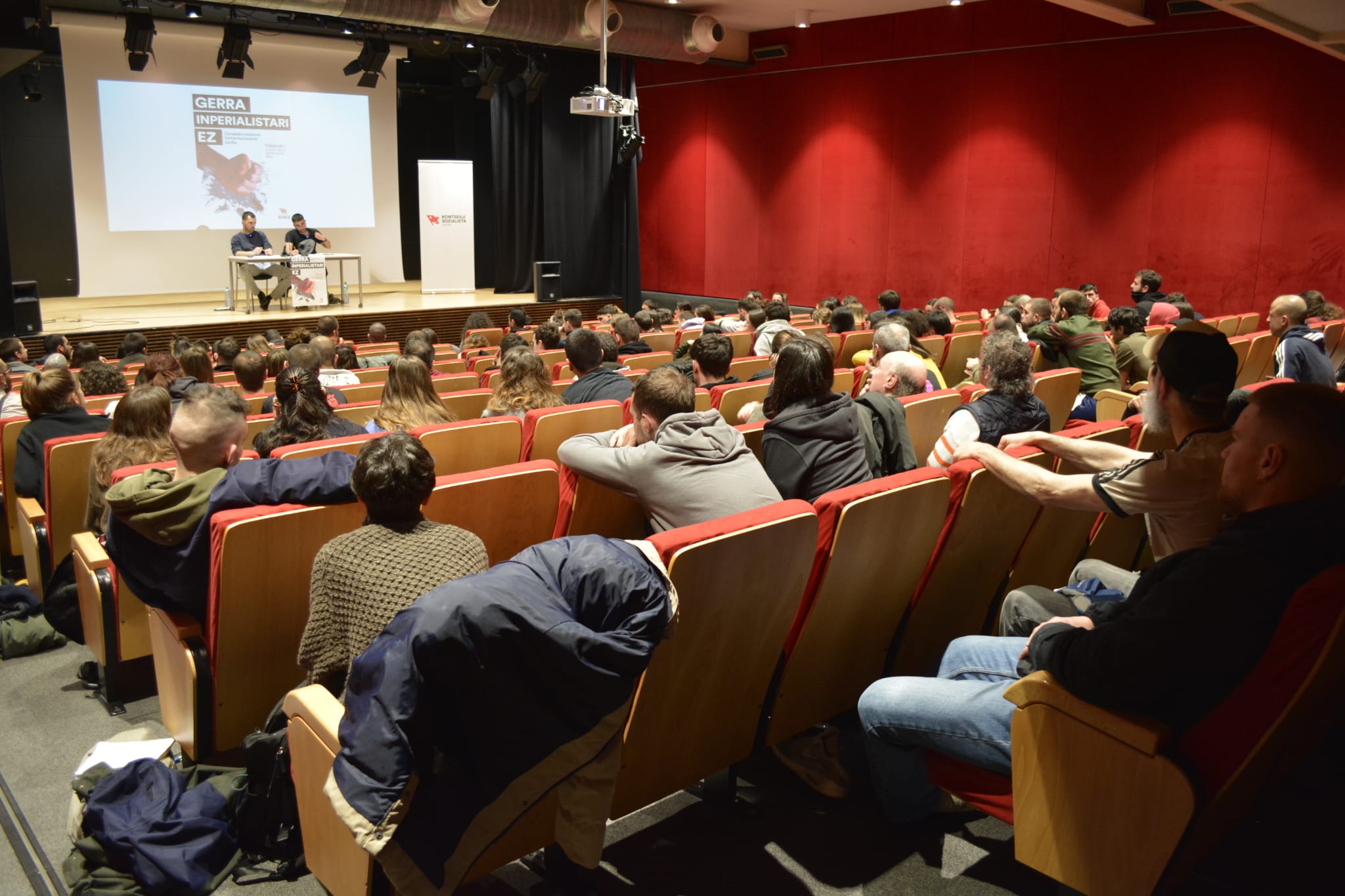 EHKSko kideek, bestalde, gerra inperialistari buruzko hainbat hitzaldi egin dituzte zenbait hiriburutan eta herritan, gudaren eta berrarmatzearen aurka mobilizatzeko arrazoiak xehatzeko. Hilabete honetan bertan izan dira hitzaldiak eta biharko manifestazioaren aurkezpen-saioak Bilbon, Donostian, Gasteizen, Iruñean (Nafarroa), Baionan (Lapurdi), Portugaleten (Bizkaia) nahiz Arrasaten (Gipuzkoa).