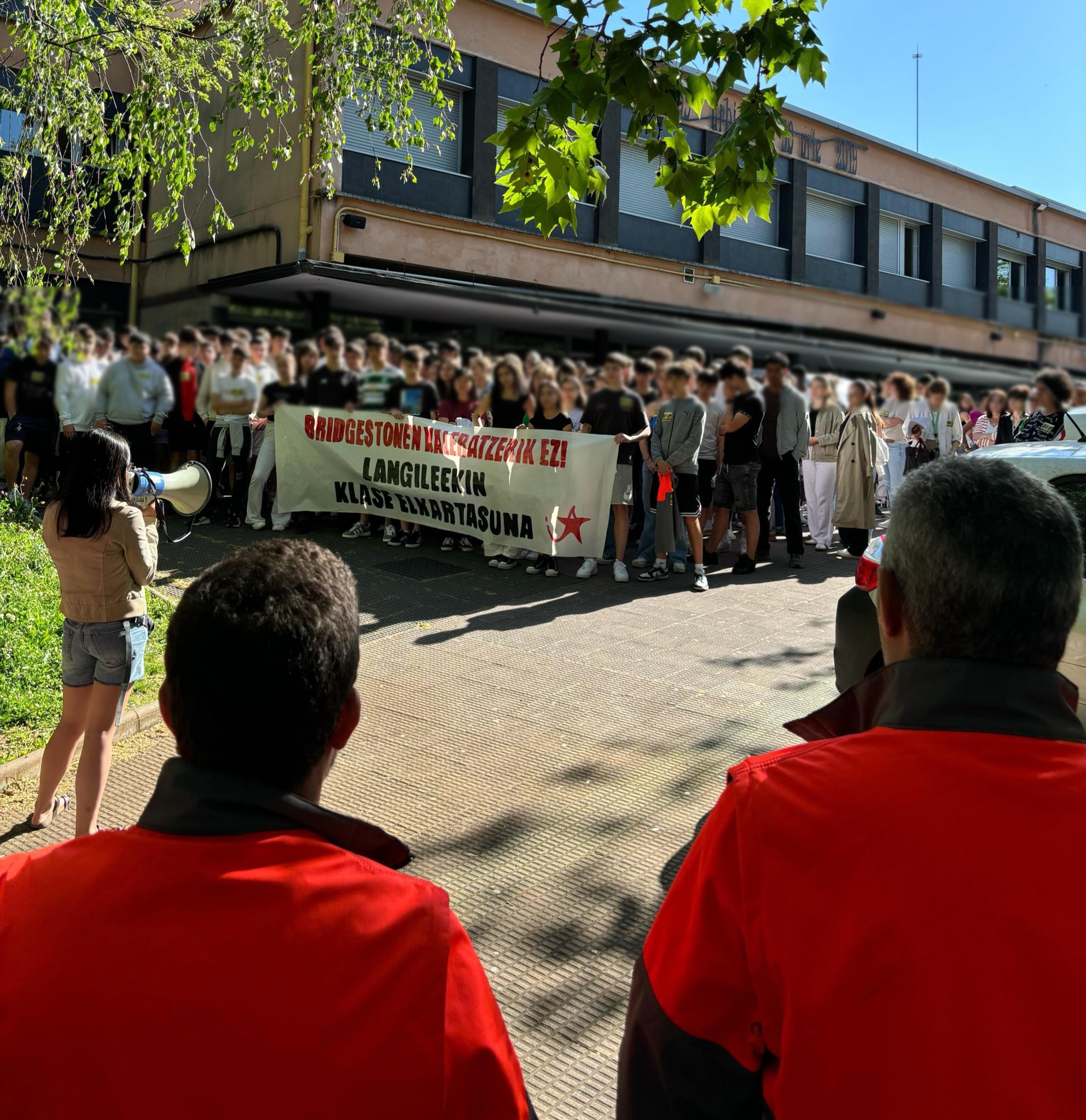 Bridgestone enpresako zuzendaritzak kaleratze masibo bat ezarri nahi du Basauriko (Bizkaia) fabrikan, 335 langile kalean utziz. Horren kontra, lanuzteak egiten eta mobilizatzen ari da plantilla, eta herriko ikasleen babesa jaso du besteak beste: gaur, Hego Uribeko Ikasle Abertzaleakek (IA) antolatuta, Urbi eta Uribarri institutuetan bildu eta elkartasun-argazkiak atera dituzte gazteek, Bridgestonen kaleratzerik ez! Langileekin klase-elkartasuna lelopean.