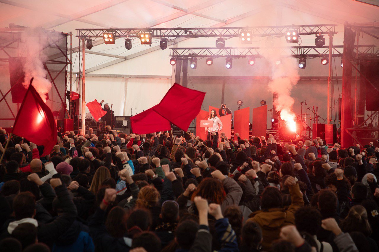 Larunbat arratsaldean izan zen topaketako ekitaldi politiko nagusia, eta hitza hartu zuten bertan CJSko kideek. Gazteria langileari berrantolatzeko deia egin zioten, hura "garaitua" izaten ari