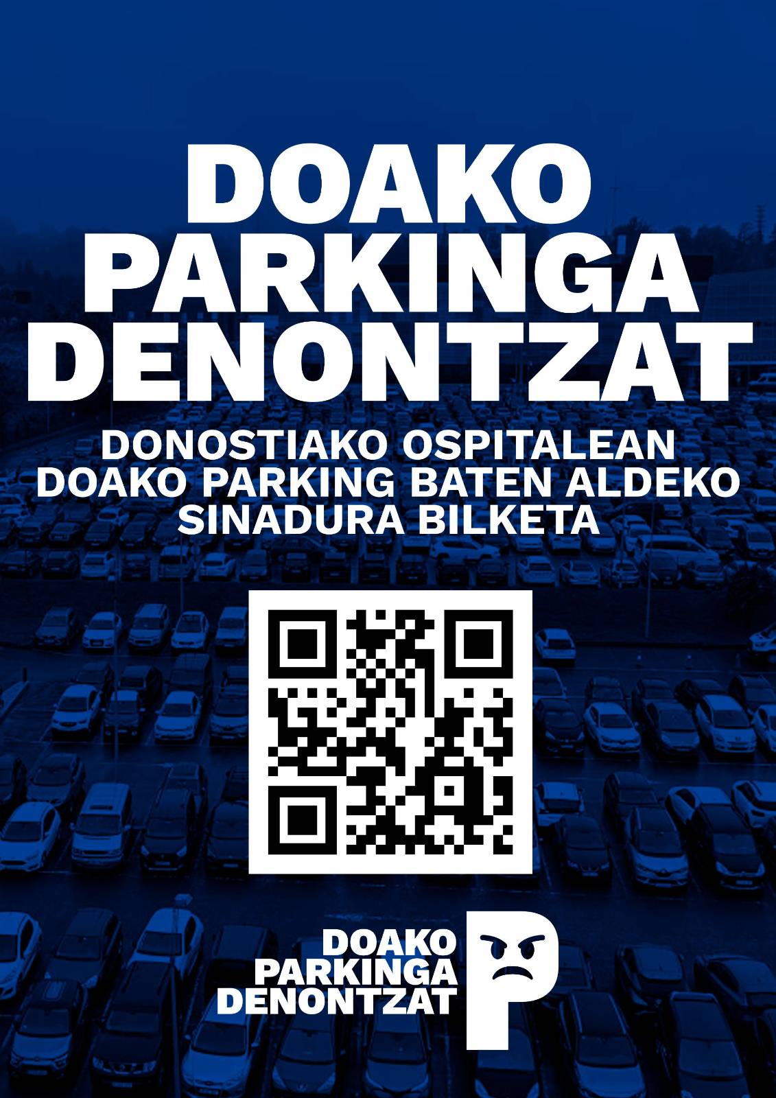 Orain arte osasun-langileen artean jardun dute sinadurak biltzen, baina erabiltzaileengana ere jo dute orain, doako parkingaren aldeko aldarria indartzeko. QR lotura baten bidez eman daiteke babesa.