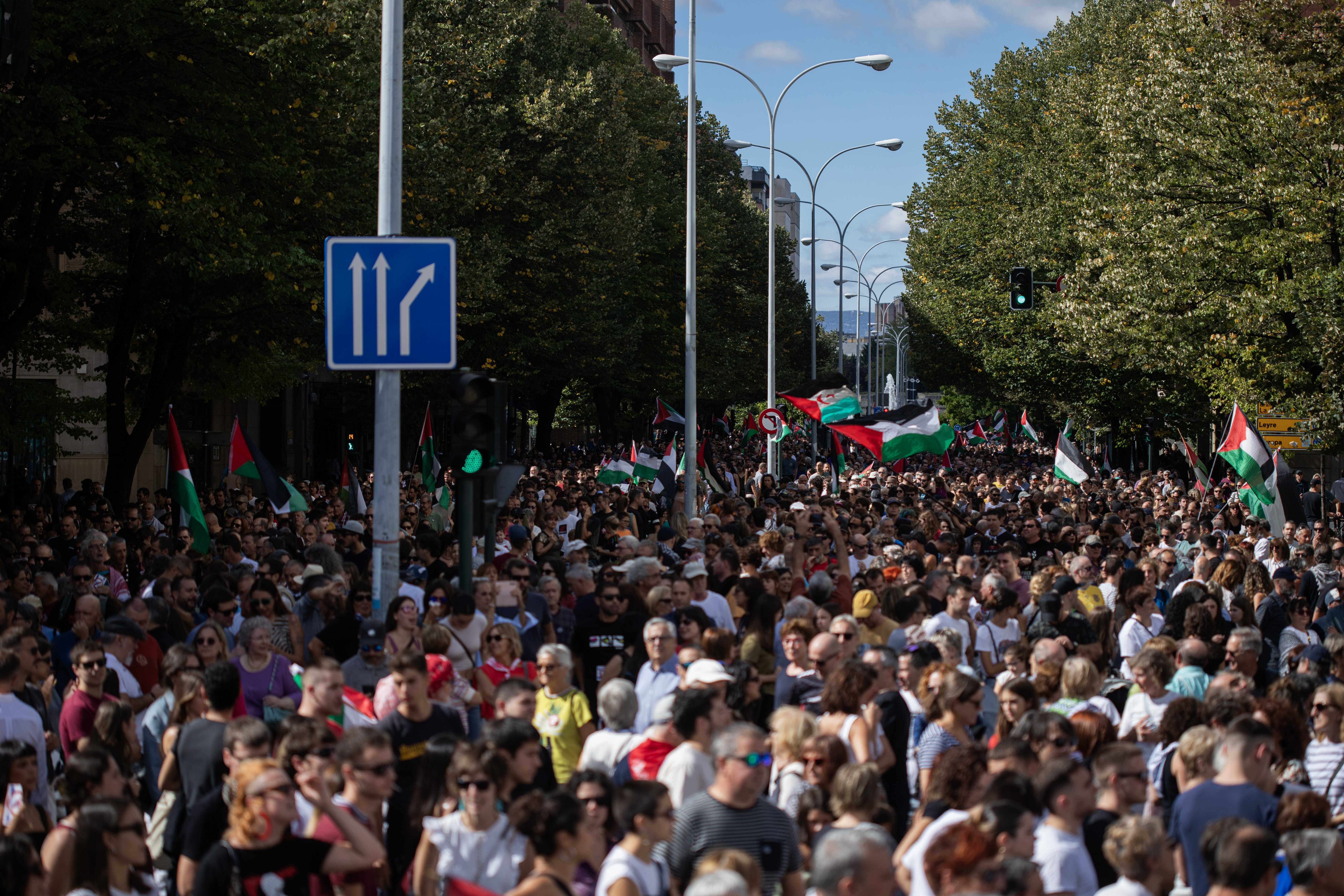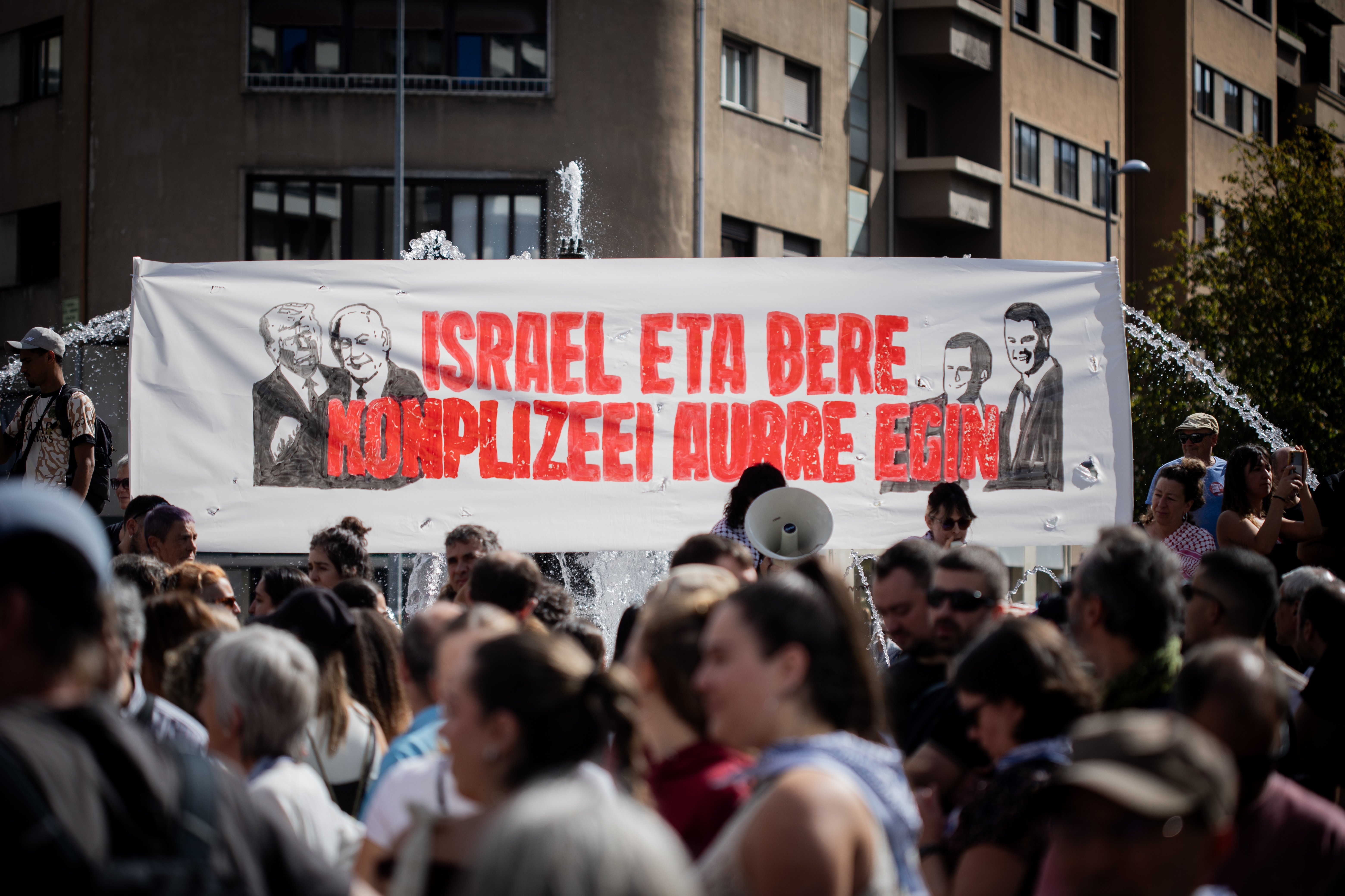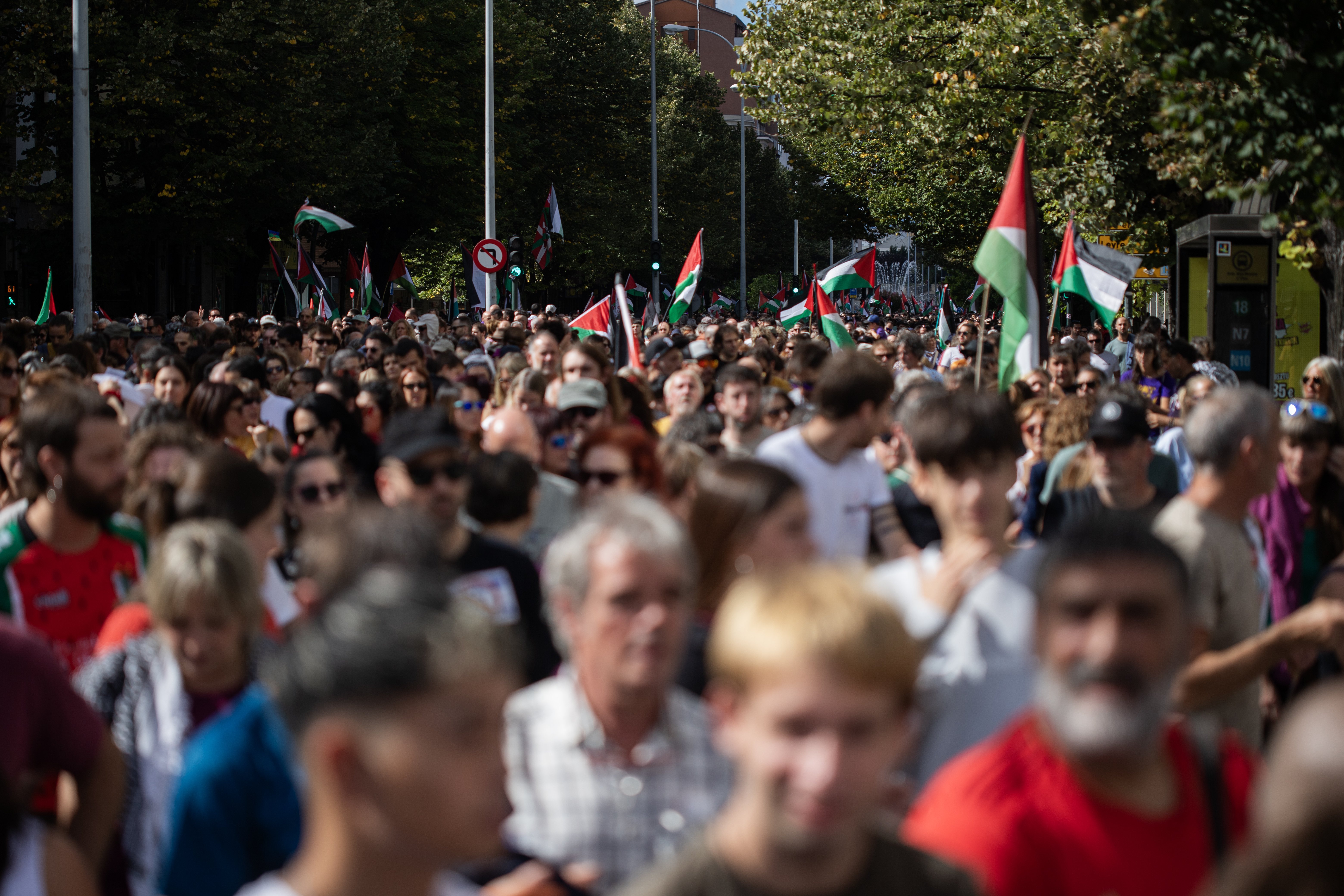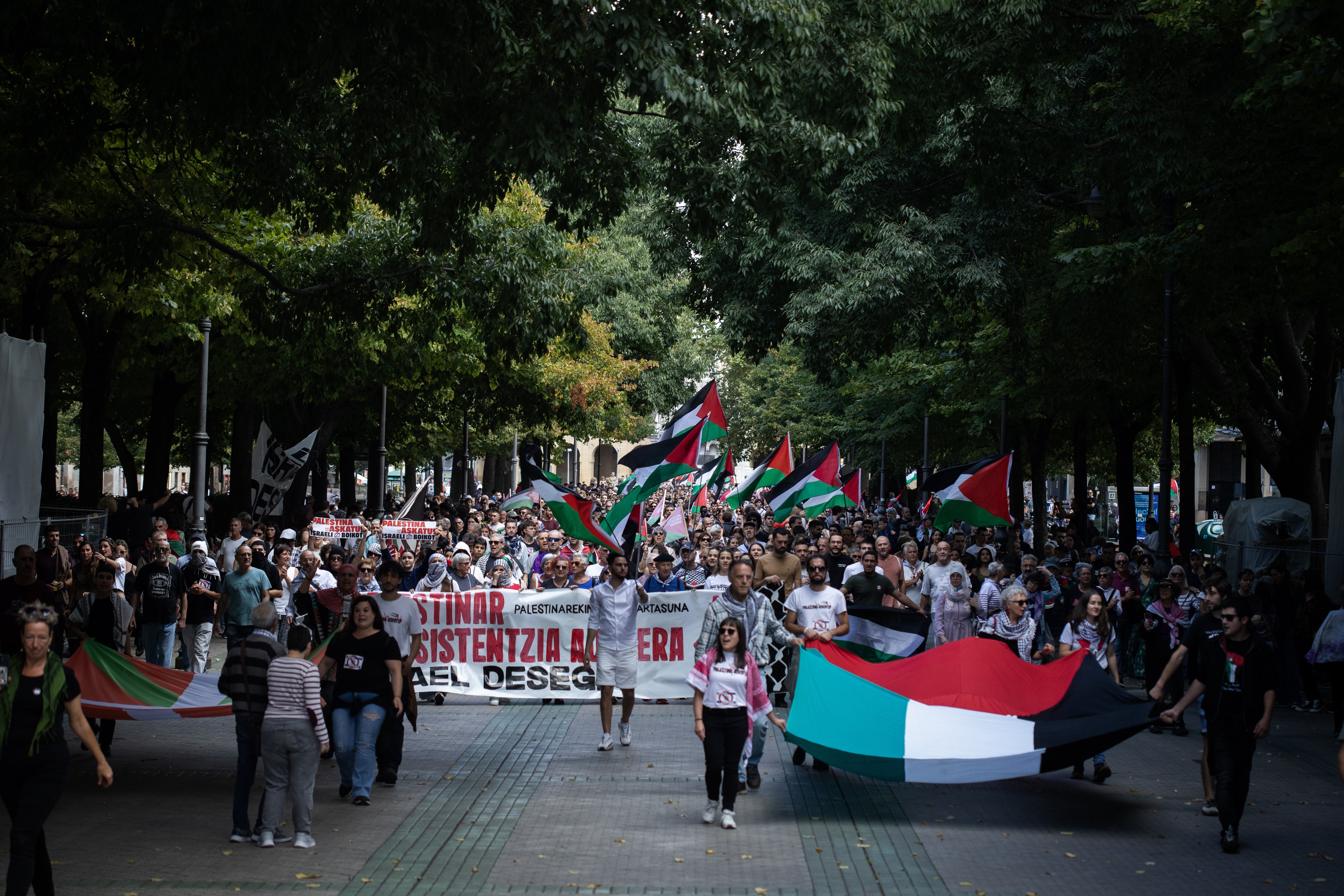 "Gaurkoan oihu egin dugu palestinar erresistentziaren alde, horrek hartzen dituen forma guztietan; oihu egin dugu Palestina osoaren deskolonizazioa eta Israelgo entitate terroristaren desegitea mahaigaineratzeko, eta oihu egin dugu sionismoaren konplize ororen aurka", azaldu dute antolatzaileek. Horrez gain, babes osoa eman diete Global Sumud Flotillako kideei.