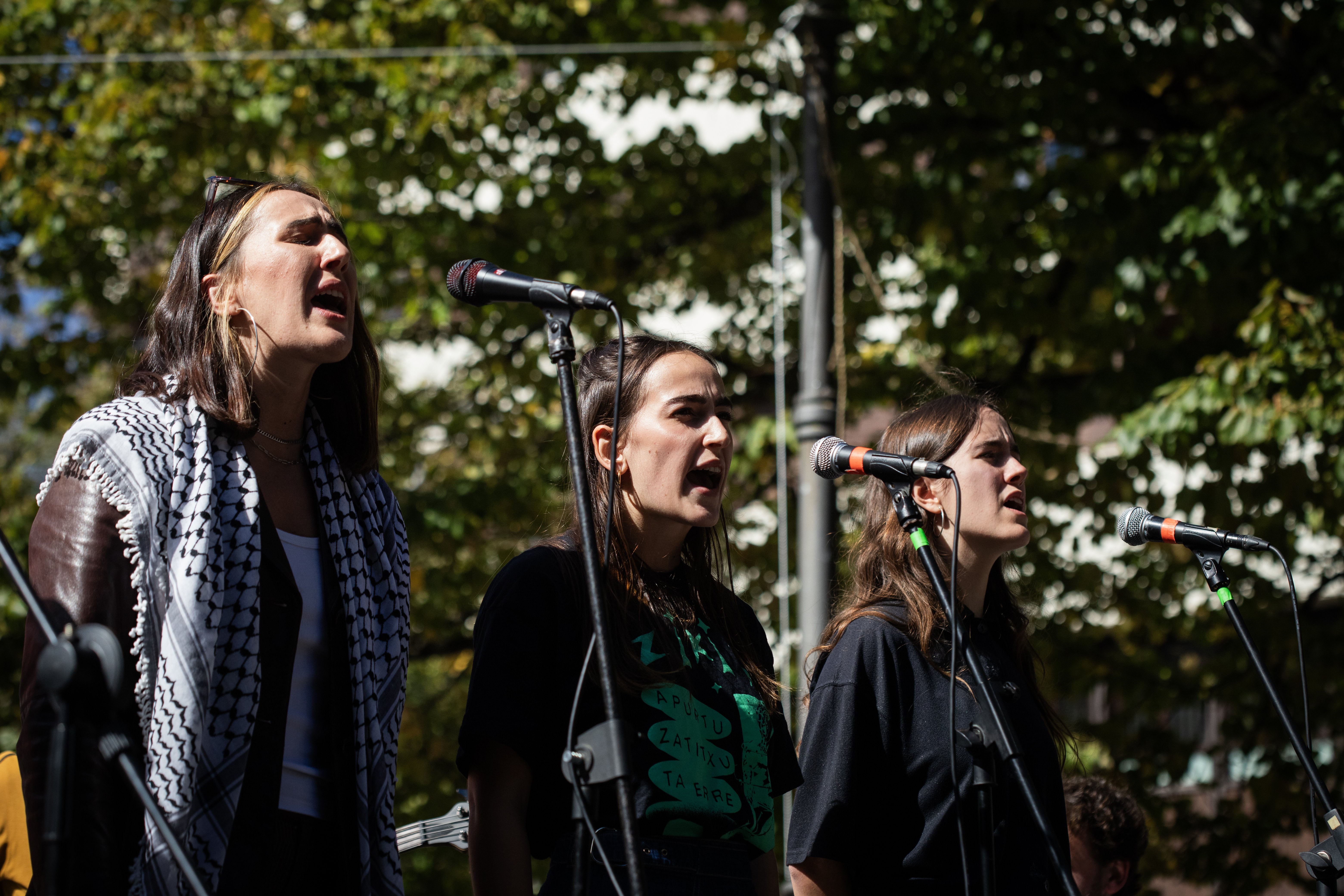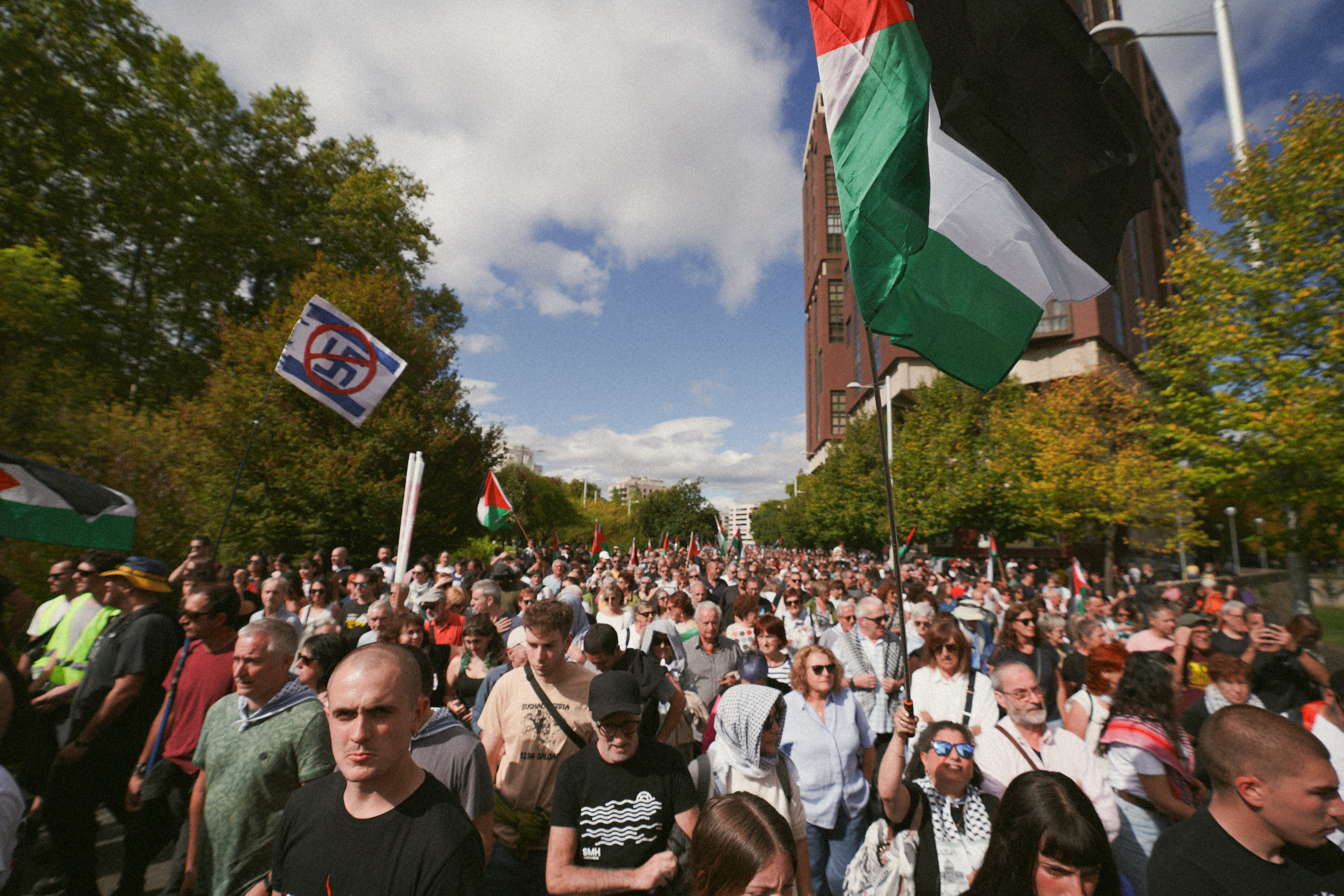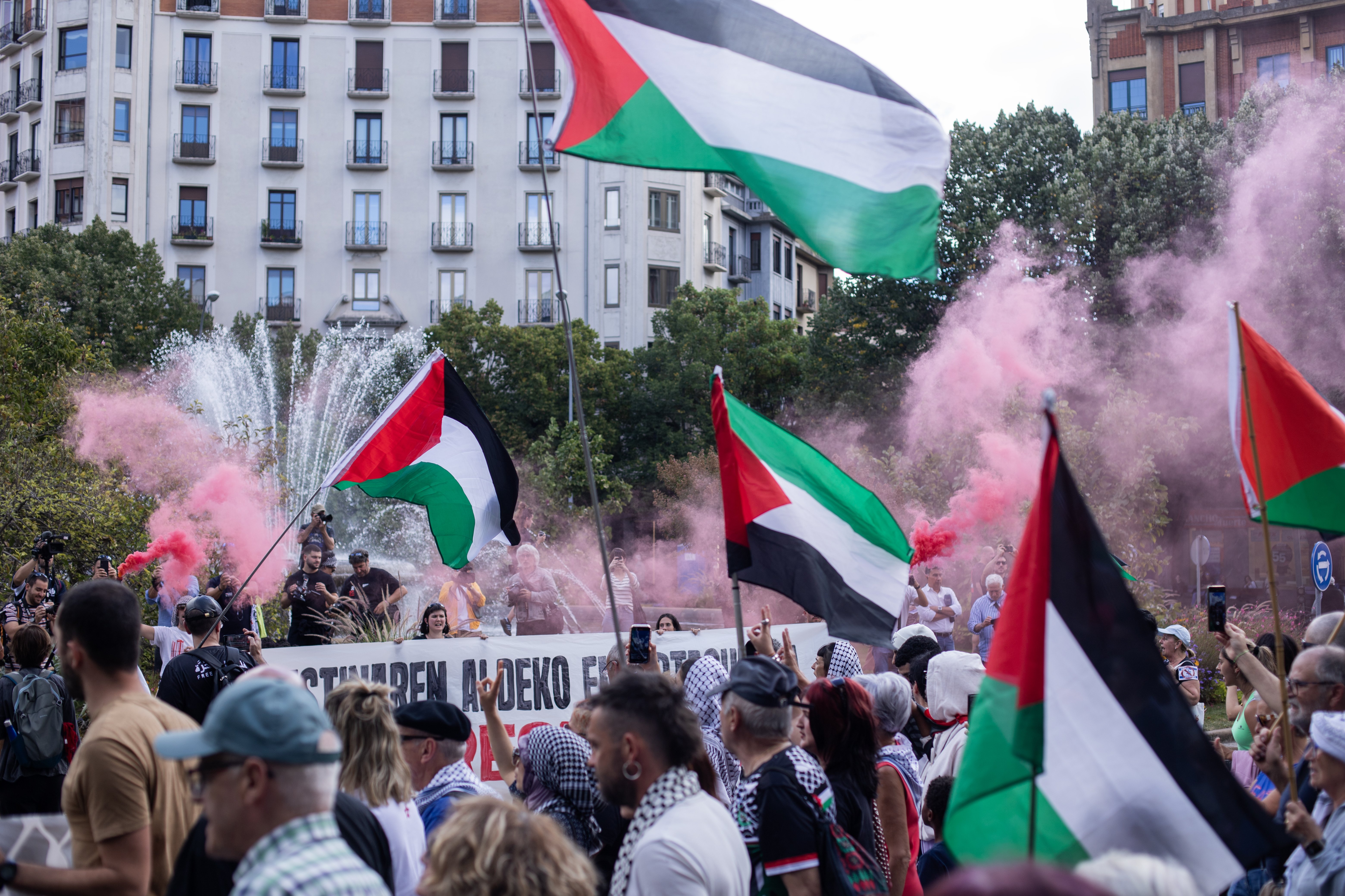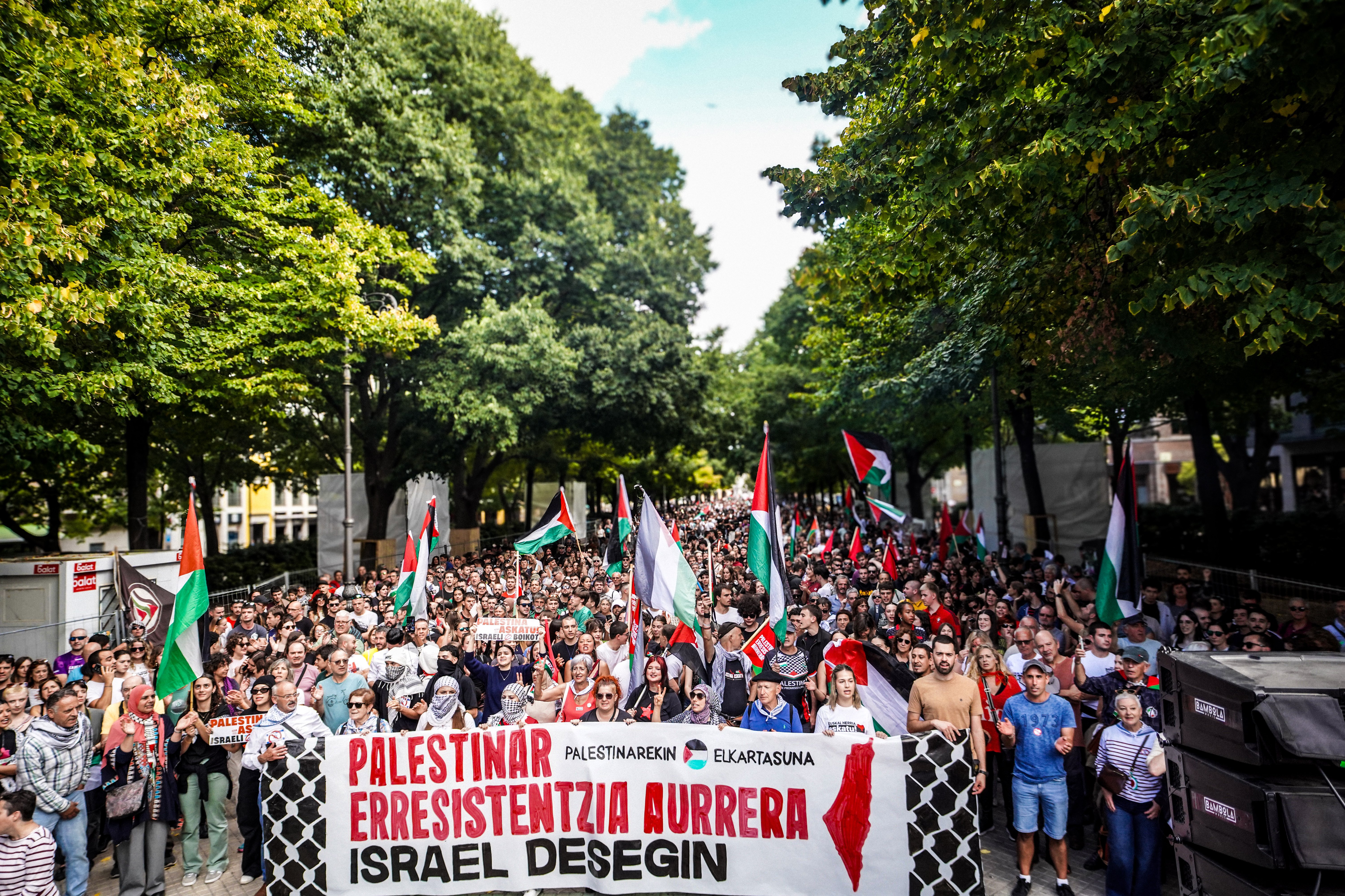 "Gaurkoan oihu egin dugu palestinar erresistentziaren alde, horrek hartzen dituen forma guztietan; oihu egin dugu Palestina osoaren deskolonizazioa eta Israelgo entitate terroristaren desegitea mahaigaineratzeko, eta oihu egin dugu sionismoaren konplize ororen aurka", azaldu dute antolatzaileek. Horrez gain, babes osoa eman diete Global Sumud Flotillako kideei.