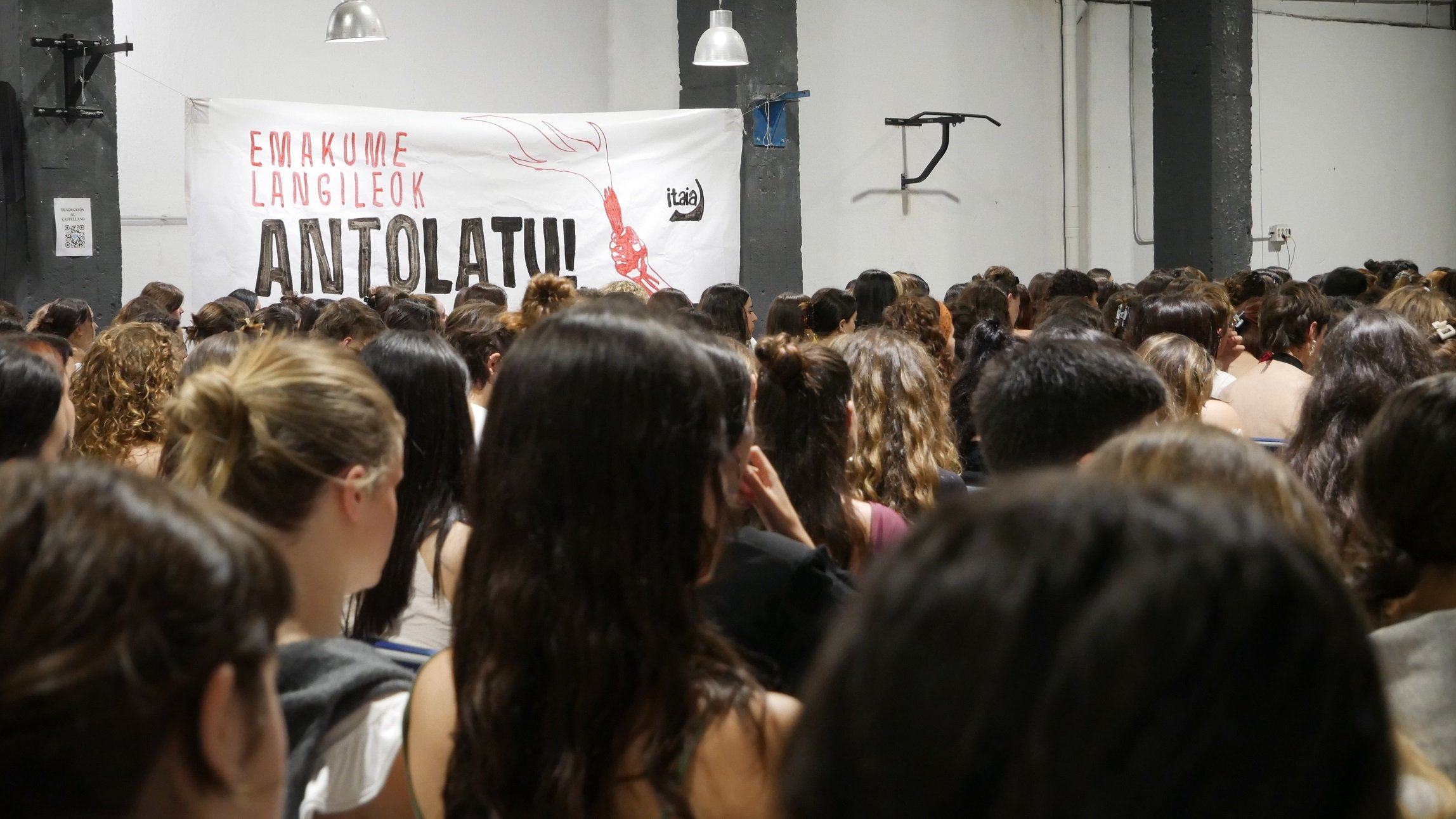Bi hitzaldi nagusi izan ziren goizean zehar. Lehenengoan, hain justu, olatu erreakzionarioaz jardun zuten batez ere, oldarraldi hori definitzeko elementu politikoak eta ekonomikoak zehaztuz. "Krisi-testuinguruan gizartearen berrantolaketa ekonomikoa gauzatzen ari dira, eta emakume langileongan eragin zehatzak ditu horrek", azaldu dute Itaiako kideek: "Horren barruan ulertzen dugu oldarraldi erreakzionarioa eta, beraz, horren ondorio gisa kokatzen ditugu matxismoaren eta ideia erreakzionarioen areagotzea eta normalizatzea".