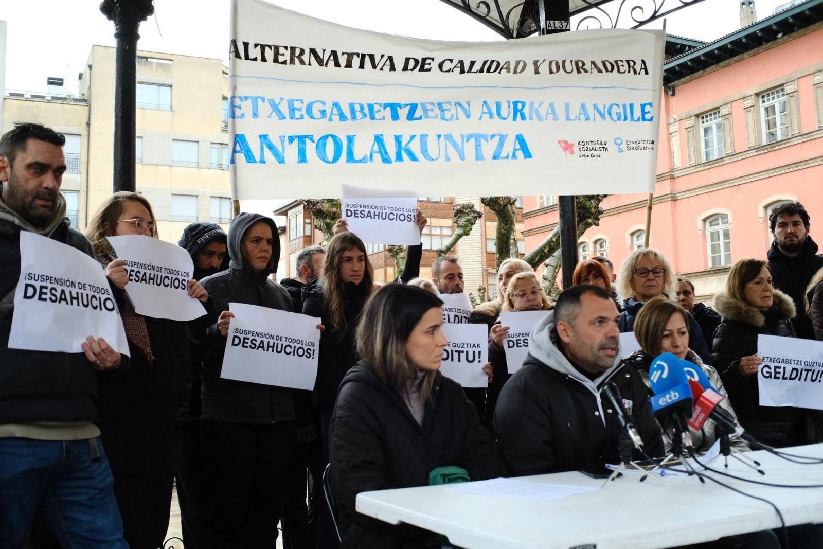 Erandioko etxe-kaleratze hirukoitzaren kasuan, sindikatuak uste du "finantza-erakundeak hiru familia horiei etxebizitzak itzultzea" izango litzatekeela "benetako irtenbidea". Gogora ekarri du, gainera, "legeak agintzen duenaren aurka ere", etxebizitza-alternatibarik gabe gauzatu zituztela ostiraleko desalojoak. "Utziko al diegu erakundeei eskuak garbitzen etxegabetutako pertsonak hotel batera sartu dituztela esanez? Ez, hori ez da alternatiba bat; ez justua, ez kalitatezkoa, ez iraunkorra", seinalatu du.