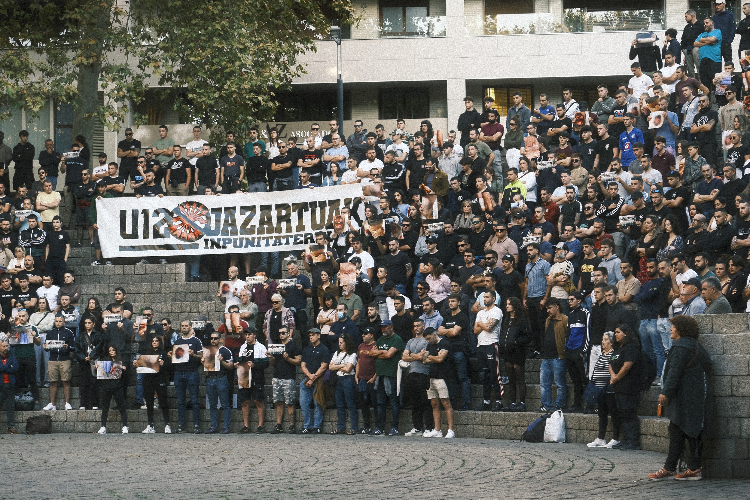 U12 jazartuak. Inpunitaterik ez! lelopean, agerraldi jendetsu bat izan zen atzo arratsaldean Gasteizen (Araba). Joan den urriaren 12an Ertzaintzak izandako "jarrera bortitza eta arduragabea" eta inpunitate poliziala salatu zituzten bertan elkarretaratutako pertsonek; izan ere, Espainiako Falangearen kontzentrazio faxista bat babesteko, ehunka antifaxistaren kontra oldartu ziren ertzainak egun horretan, hainbat pertsona larriki zaurituz eta atxilotuz. "Gertatutakoa ezin dugu onartu, eta jendarteak horren berri izan behar du", seinalatu zuten prentsaurrekoan: "Inpunitateak ez du lekurik, eta horri amaiera eman behar zaio".
