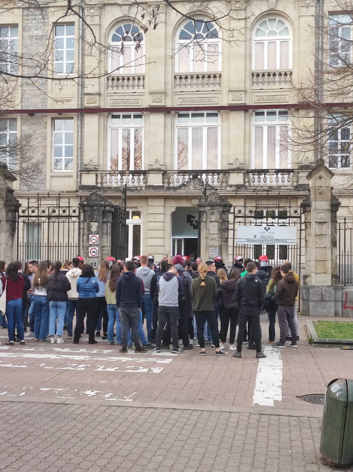 Beste egun batez, polizia-indarren presentzia ere handia izan da aurreneko ordutik. Gasteizko (Araba) campuseko Elurreta ixten ari ziren ikasleak indarrez kanporatu ditu Ertzaintzak, eta Bilbon (Bizkaia), berriz, ikasle bat atxilotu dute goizean goiz. Aske utzi dute jarraian. Ikasle ugari identifikatu dituzte, bestalde, Donostiako Ibaetako campusean, Leioako campusean, Tolosan (Gipuzkoa) zein Nafarroako Unibertsitate Publikoan, Iru´ñean (Nafarroa).