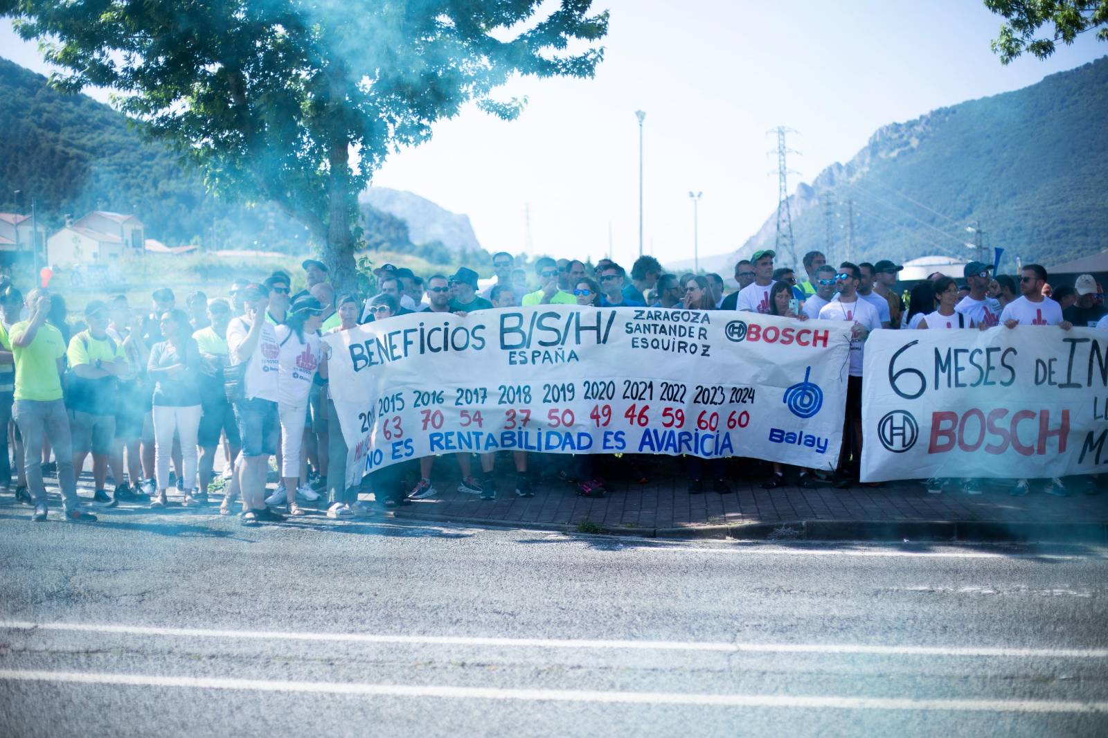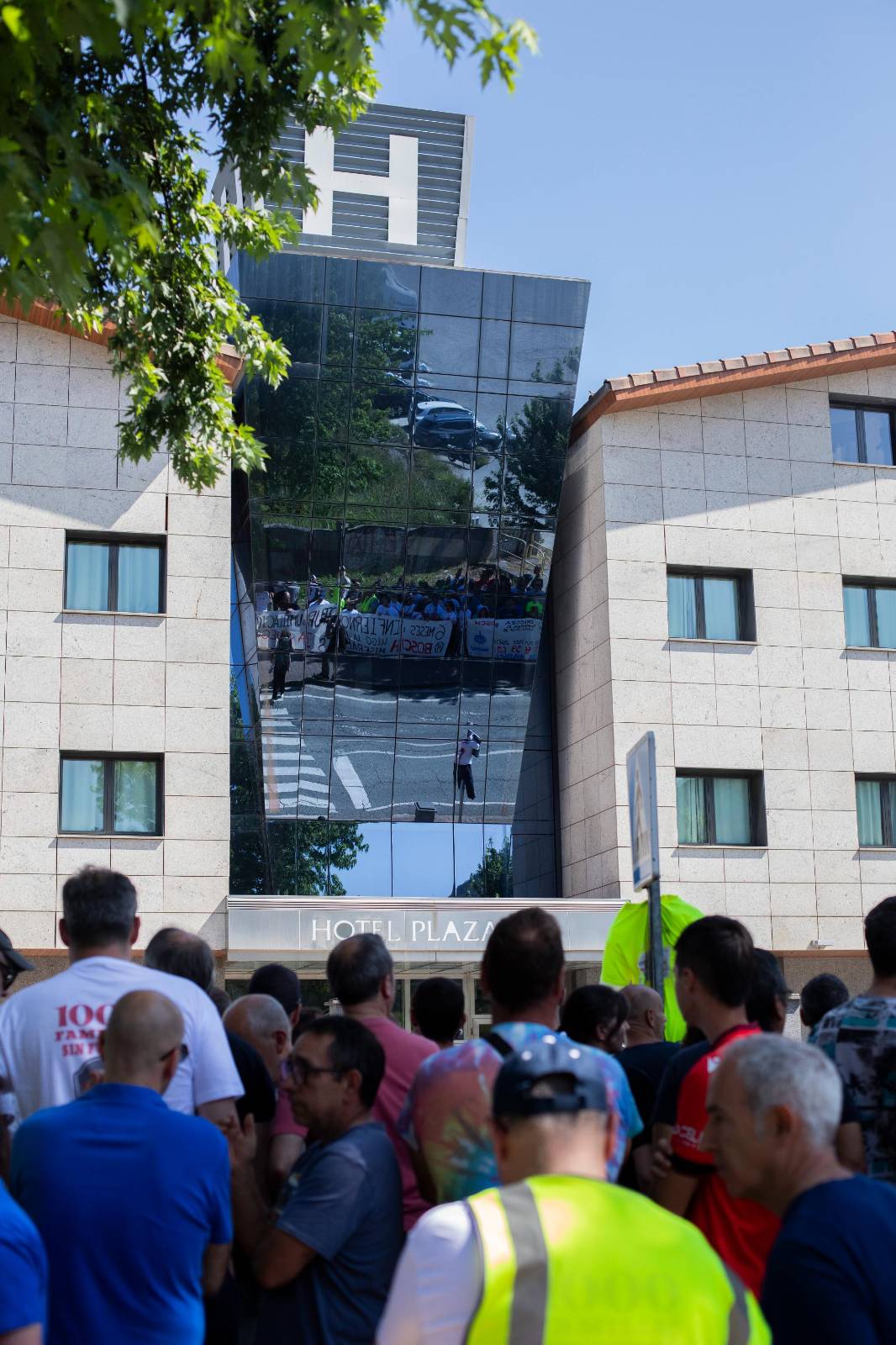 Ez du lortu, ordea, eta Plazaola hotel aurrean elkarretaratu dira goizean, Uharteko (Nafarroa) BSHko langile-batzordeak deituta. Hainbat mezu irakur zitezkeen beharginen pankartetan: "BSH ez itxi", "Nafarroako industriaren alde", "Ez da errentagarritasuna, diruzalekeria da" eta abar.
