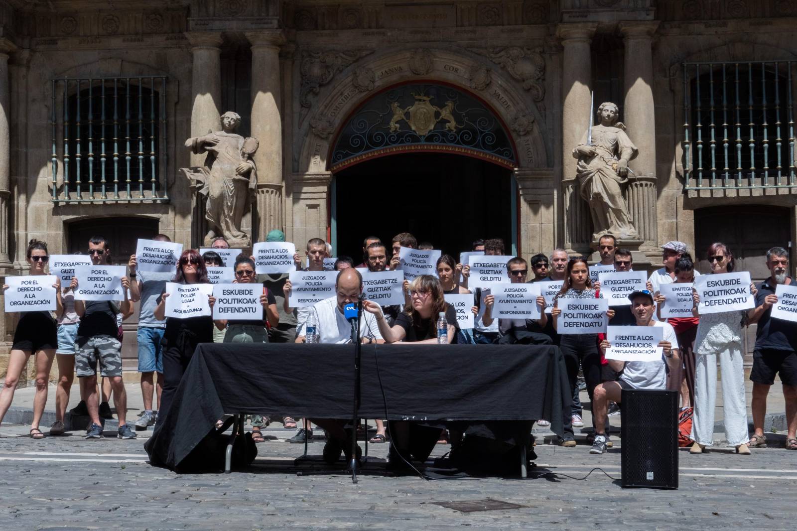 Gaur eguerdian, Iruñeko (Nafarroa) udaletxe aurrean bildu dira hainbat kolektibotako kideak, "Iruñerrian etxebizitza-eskubidearen arloan izan diren zenbait gertakaritan eskubide politiko oinarrizkoenak sistematikoki urratu direla" salatzeko. Bat egin dute Iruñerriko Etxebizitza Sindikatu Sozialistak, Harituk, Nafarroako Salhaketak, Berriozarko PAH plataformak, Nafarroako SOS Arrazakeriak, Dar Etxeak eta Pertsona Migratuendako Informazio Guneak.