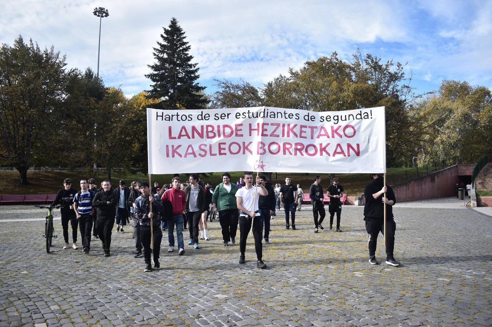 Atzo, 11:45ean Iruñeko (Nafarroa) Foruen Plazatik abiatuta, mobilizazio bat egin zuten lanbide heziketako (LH) ikasleek, Iruñerriko Ikasle Abertzaleakek (IA) deituta. "Bigarren mailako ikasleak izateaz nazkatuta" daudela esan dute, eta "larria" dela Nafarroako lanbide heziketako egoera. Baliabideen murrizketa, praktikaldietako prekaritatea eta ikasleek zigorrak jasateko gainean daukaten mamua salatu dituzte, hain zuzen ere.