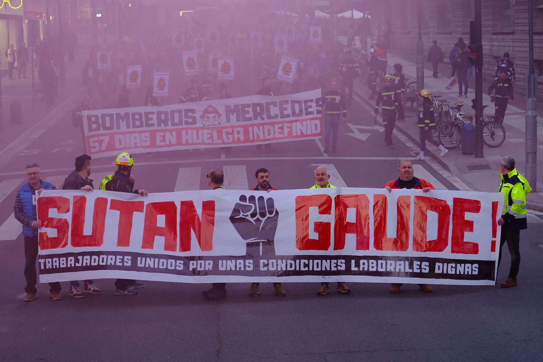 Atzo, klase-elkartasunak hartu zituen berriz Gasteizko kaleak. Mercedeseko suhiltzaile industrialek manifestazio bat antolatu zuten arratsalderako, ia 60 egun bete baitituzte greba mugagabean euren lan-baldintzen eta segurtasun-baldintzen defentsan, eta deialdiarekin bat egin zuten Arabako enpresa ugaritako beharginek eta hamaika kolektibok. Hala, Bilbo plazatik abiatuta, mobilizazio jendetsu bat egin zuten hiriko erdigunean barrena: Sutan gaude. Trabajadores unidos por unas condiciones laborales dignas zioen manifestazioaren buruan zeramaten pankartak.
