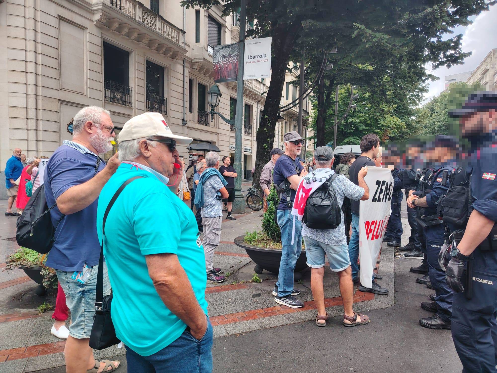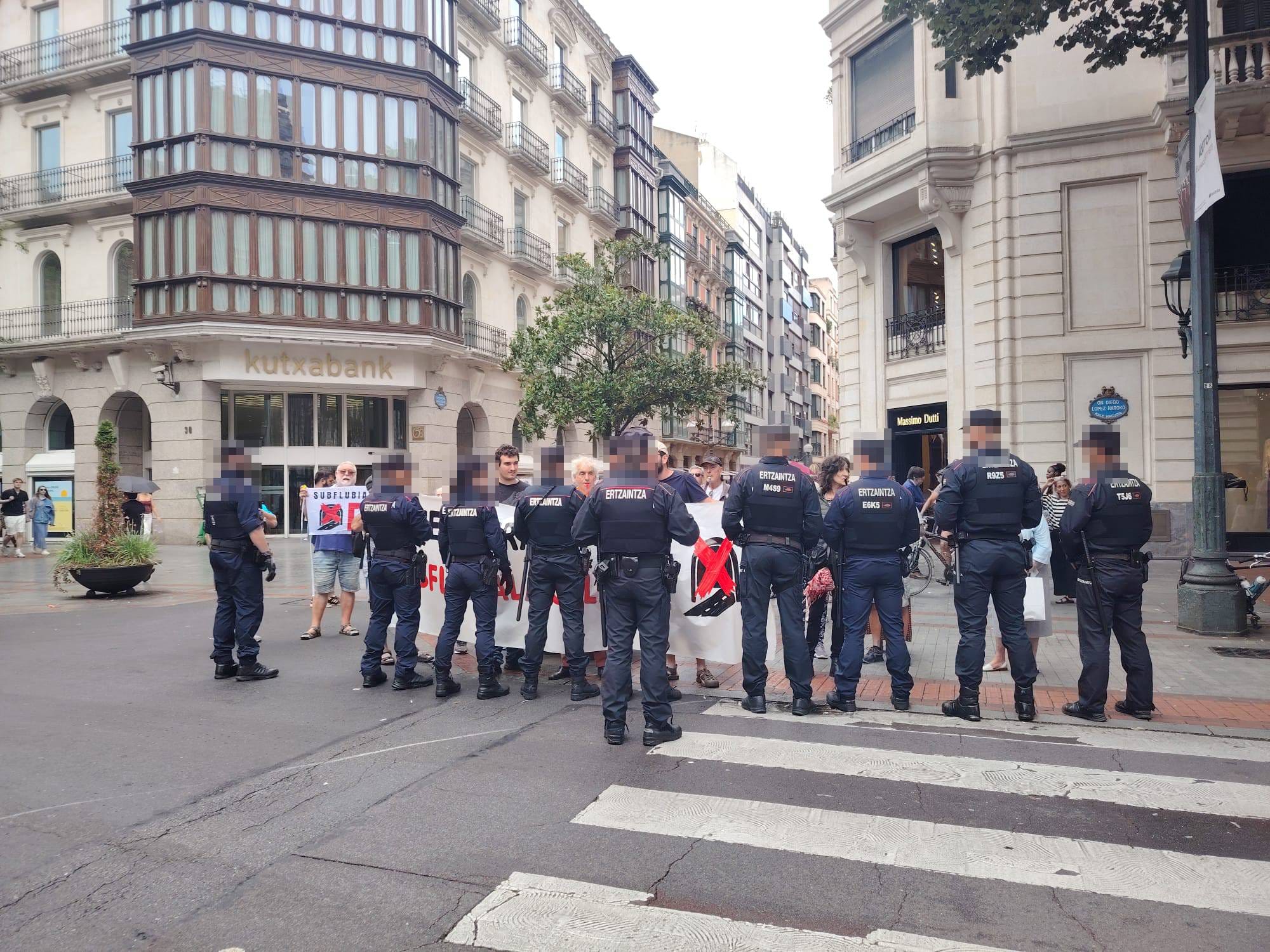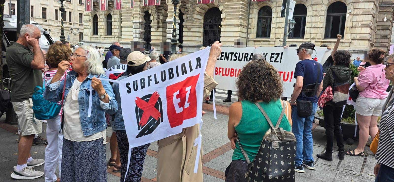 Aurrez debekuari buruzko inolako jakinarazpen idatzirik helarazi gabe, jauregira hurbiltzea galarazi zien Poliziak manifestariei. Subflubiala Ezeko kideek salatu zuten, hala, agintaritzek "ilegalki" debekatu zutela mobilizazioa. Gainera, protestan parte hartzen ari ziren sei lagun identifikatu zituzten ertzainek, eta badirudi "desobedientzia" leporatuko dietela. "Oso gogorki salatu nahi dugu gure protesta isilarazteko saiakera hau eta EAJk egin duen Poliziaren erabilera partidista, gustuko ez dituen protestak isilarazteko erabiliz", seinalatu zuen plataformak.