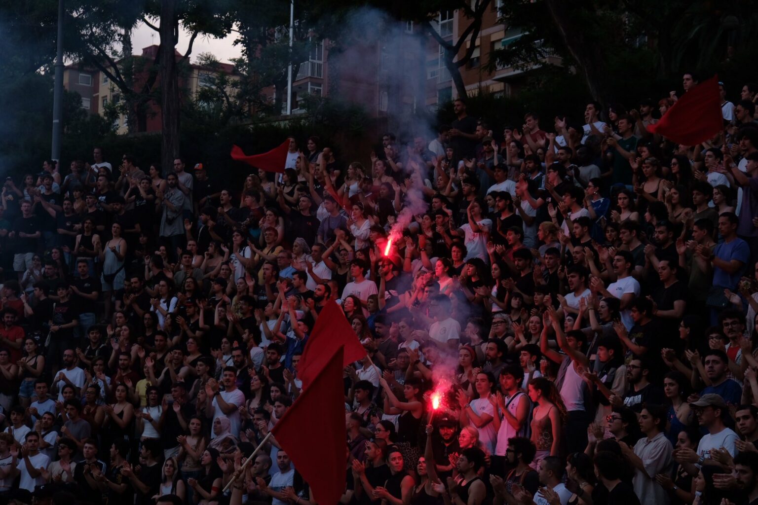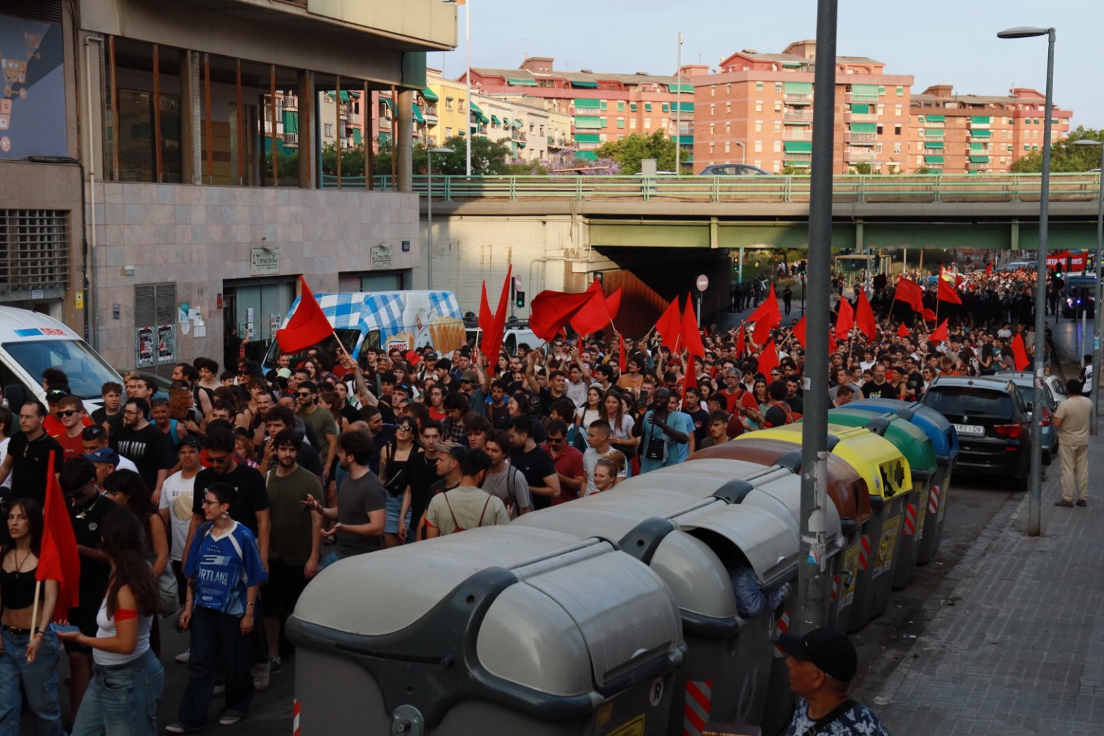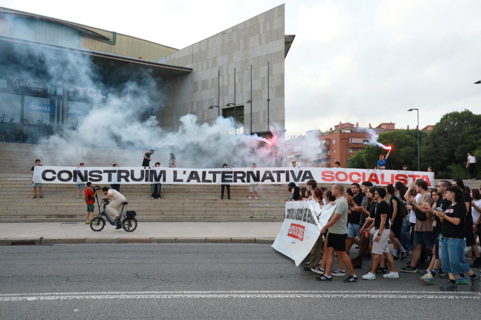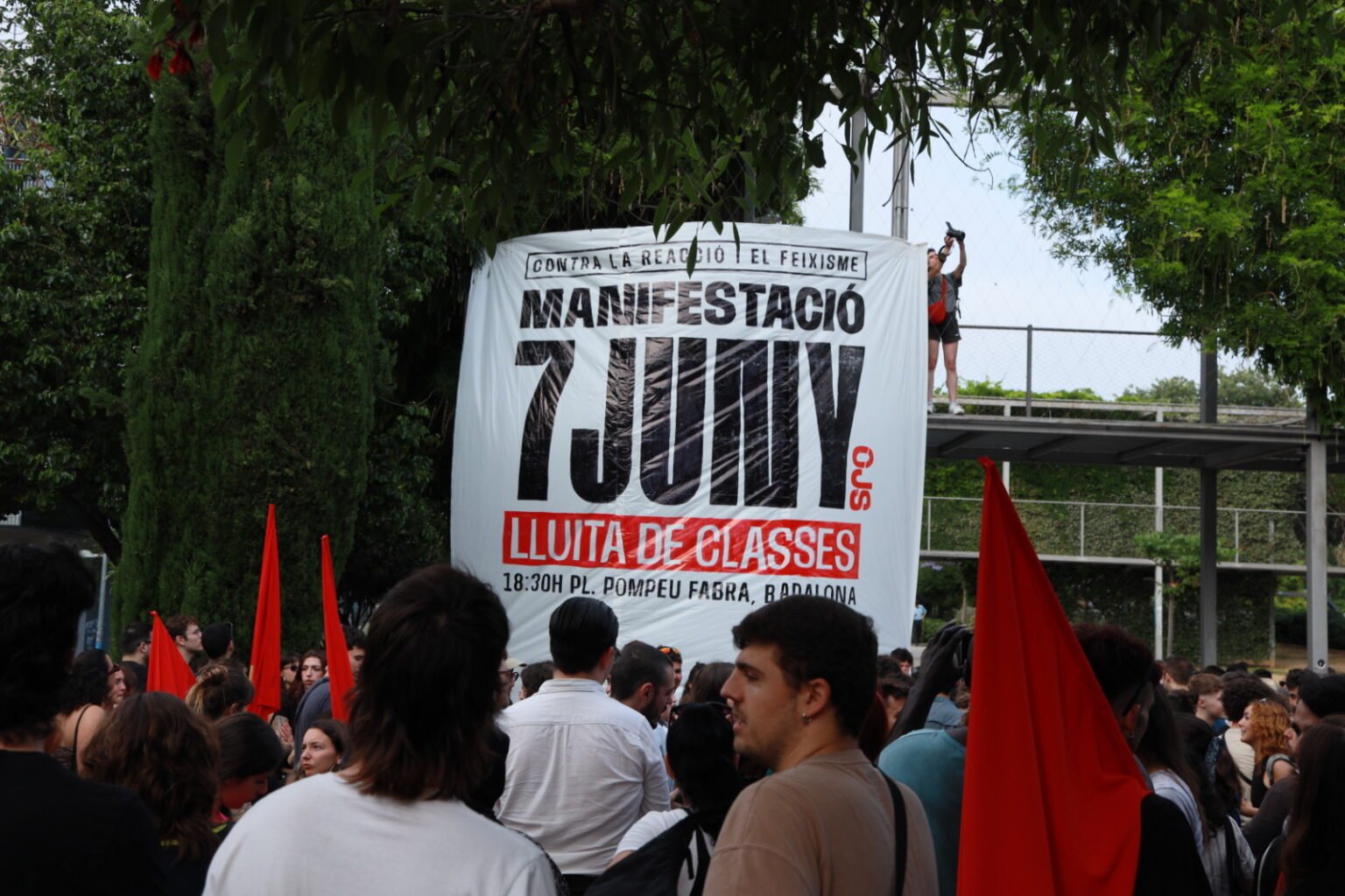 Larunbatean manifestazio handi bat egin zuen Kataluniako Organització Juvenil Socialistak (OJS), Erreakzioaren eta faxismoaren aurka, klase-borroka lelotzat hartuta. 18:30ean, Badalonako (Bartzelona) Pompeu Fabra plazan elkartu ziren 30 bat herritatik zihoazen zutabeak; hala nola Lleidatik, Gironatik, Tarragonatik, Baix Llobregatetik edo Maresmetik. Pompeu Fabratik abiatu zen manifestazioa, eta Parc Gran del Soleko anfiteatroan amaitu.