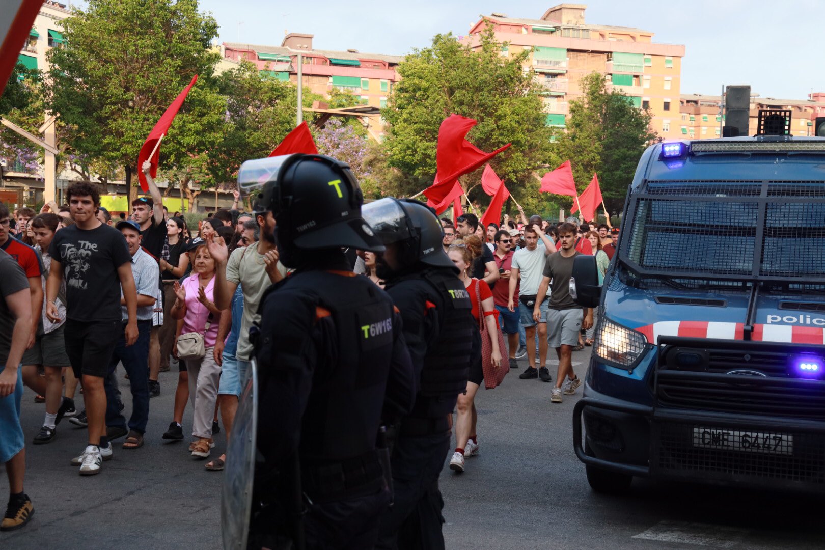 Zutabeak iritsi zirenean, mossoen ordena publikoko unitateek atxiki zituzten batzuk, eta manifestariak miatu zituzten. Ibilbidean zehar, istiluen aurkako dispositibo handi batek manifestaziorako bidea oztopatu zuen, baina azkenean helmugara iritsi ahal izan zen.