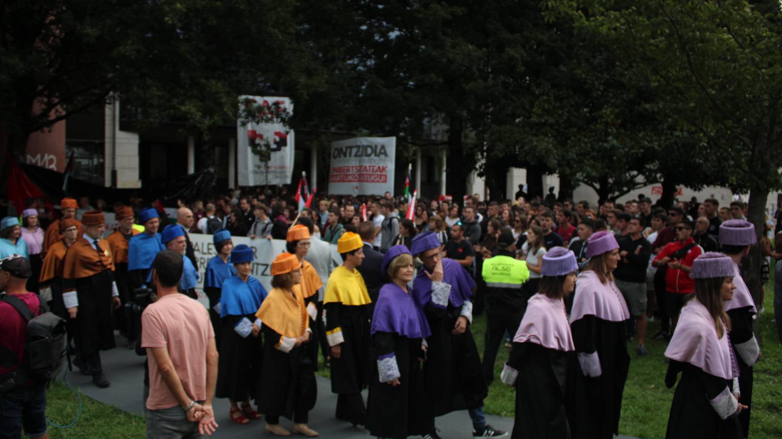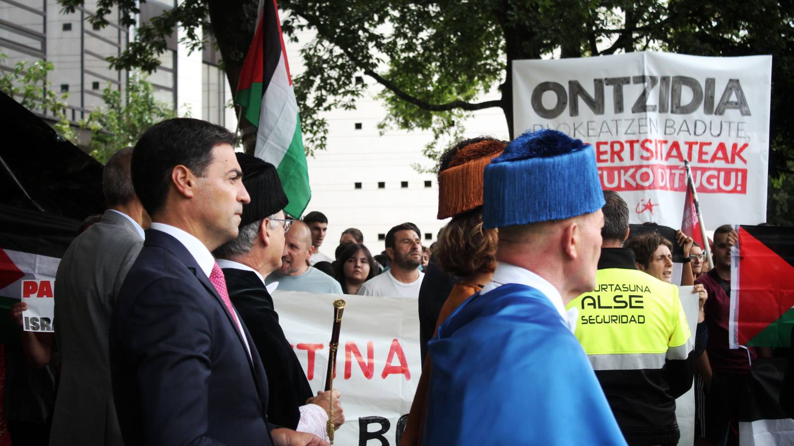 Euskal Herriko Unibertsitateak (EHU) gaur egin du ikasturteari hasiera emateko ekitaldia, Ibaetako (Donostia, Gipuzkoa) campusean. Bertan izan dira, besteak beste, Imanol Pradales lehendakaria (EAJ) eta Joxerramon Bengoetxea errektorea; baina Palestinaren aldeko aldarriek markatu dute gaurko ekitaldia.