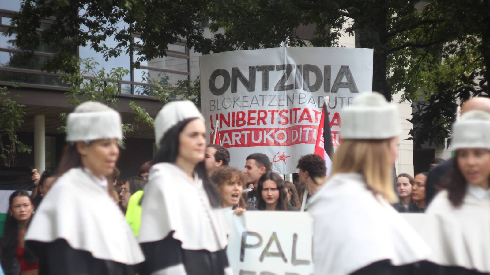 Ikasle Abertzaleak (IA) antolakundeak deituta, protesta jendetsu bat izan da Aulariopean 11:00etan hasita, EHUren ekimenaren ondoan. Palestinar erresistentzia aldarrikatzeko eta Eusko Jaurlaritzak eta EHUk estatu sionistarekin duten konplizitatea salatzeko mobilizatu dira hainbat eta hainbat ikasle.