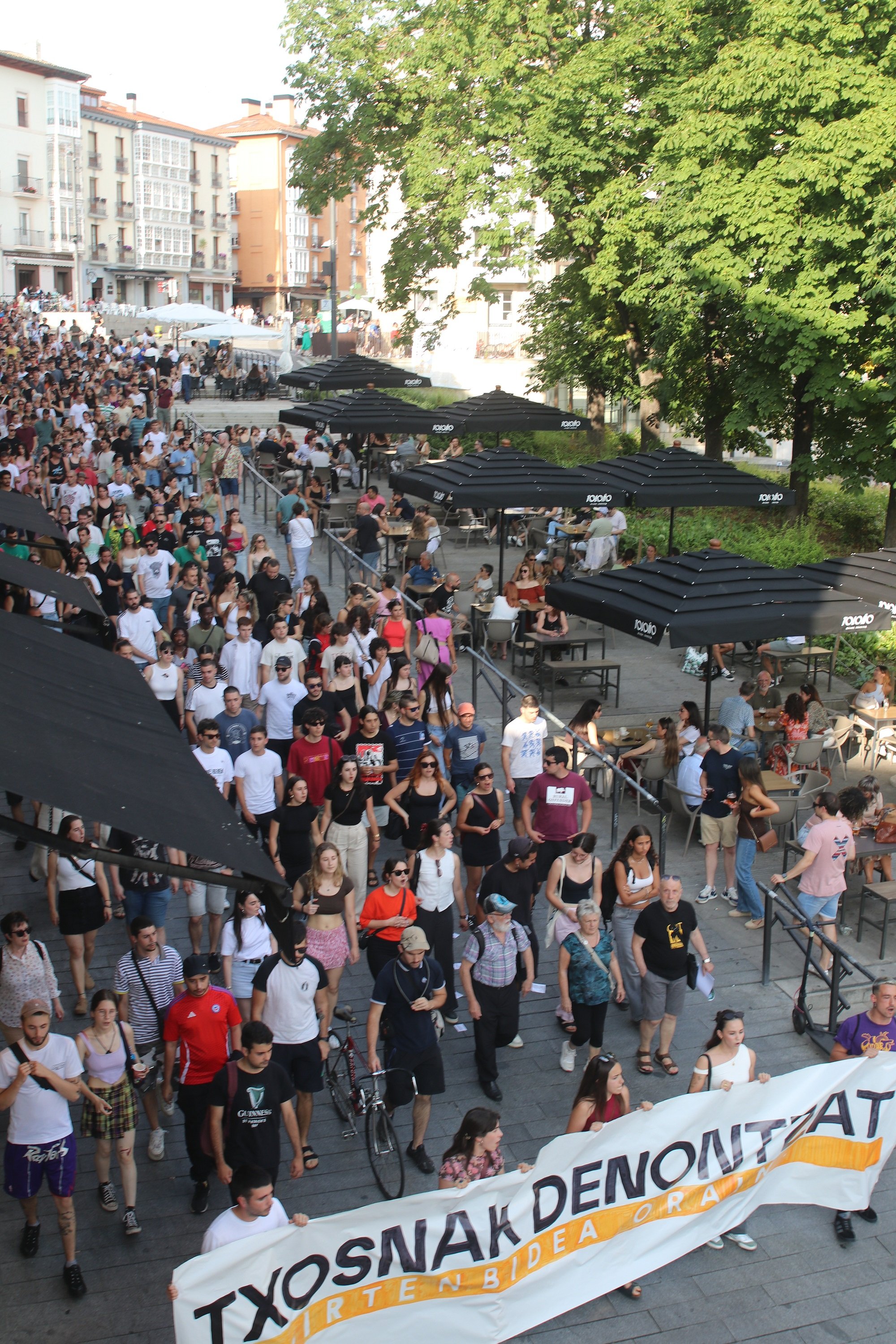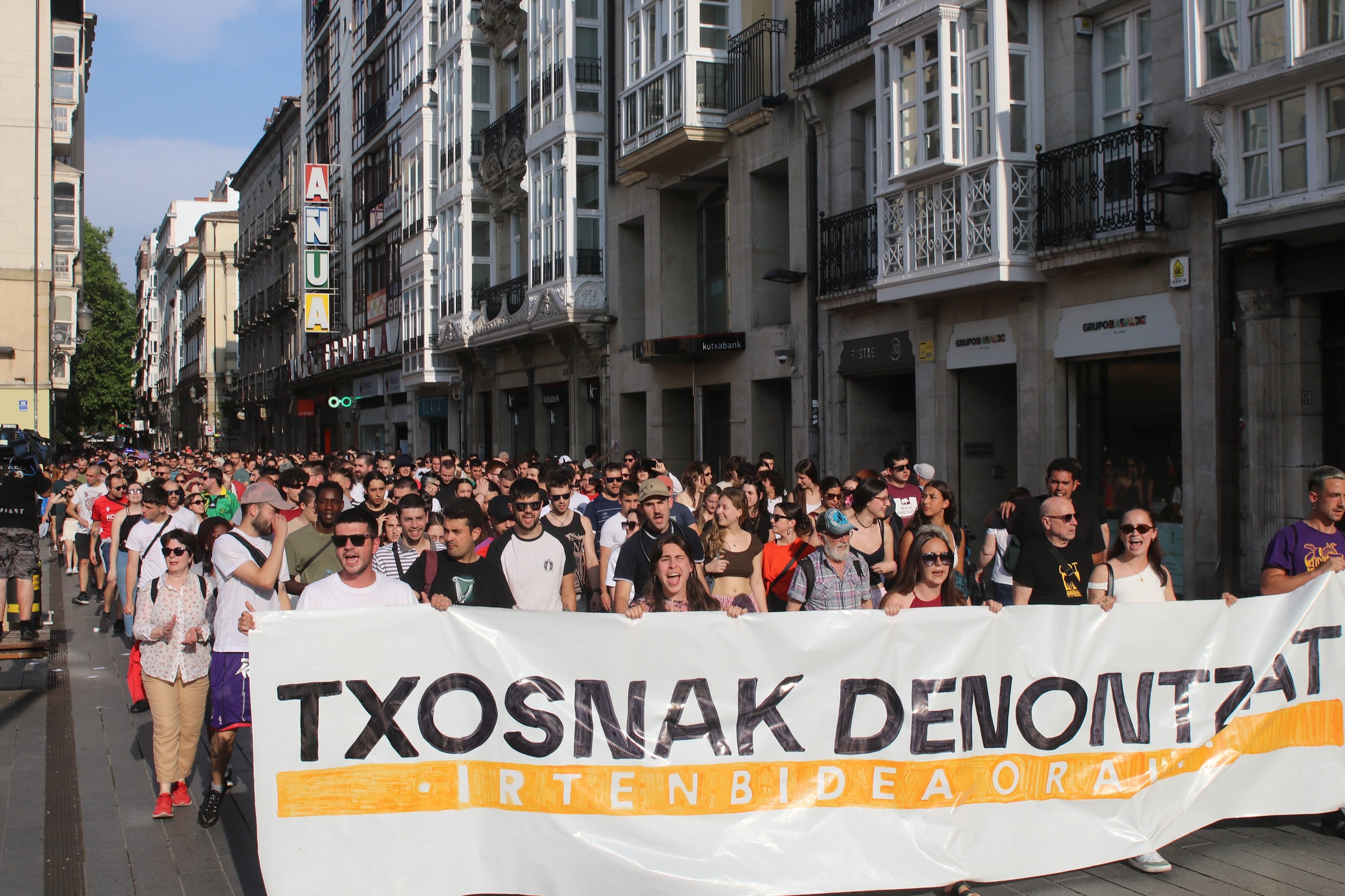 Manifestazio jendetsu bat egin zuten atzo arratsaldean Gasteizen (Araba), Txosnak denontzat, irtenbidea orain! lelopean. Izan ere, bost urte bete dira jada Gasteizko Txosnetan Gazte Koordinadora Sozialistari (GKS) eta Etxebizitza Sindikatu Sozialistari beto politikoa jarri zietenetik, eta, oraindik ere, debekatu egiten diete jaigunean parte hartzea. Horiek horrela, ehunka pertsona mobilizatu ziren atzokoan, irtenbide bat exijitzeko.