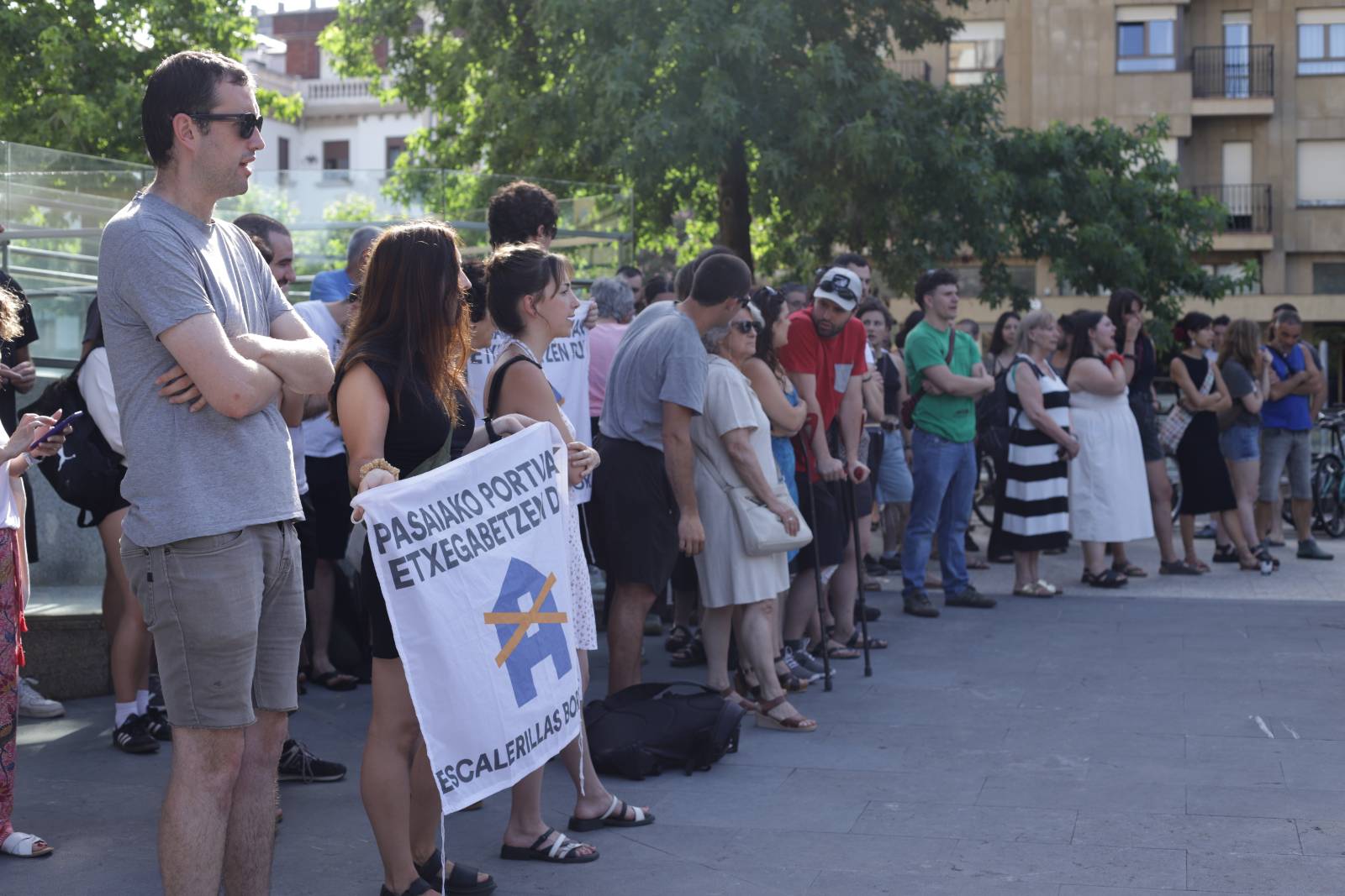 Escalerillaseko bizilagunekin elkartasunez, eta guztientzako etxebizitza-aterabide baten alde, elkarretaratze bat izan da epaitegi aurrean, epaiketa egiten zuten bitartean. Etxebizitza Sindikatu Sozialistak antolatu du protesta.