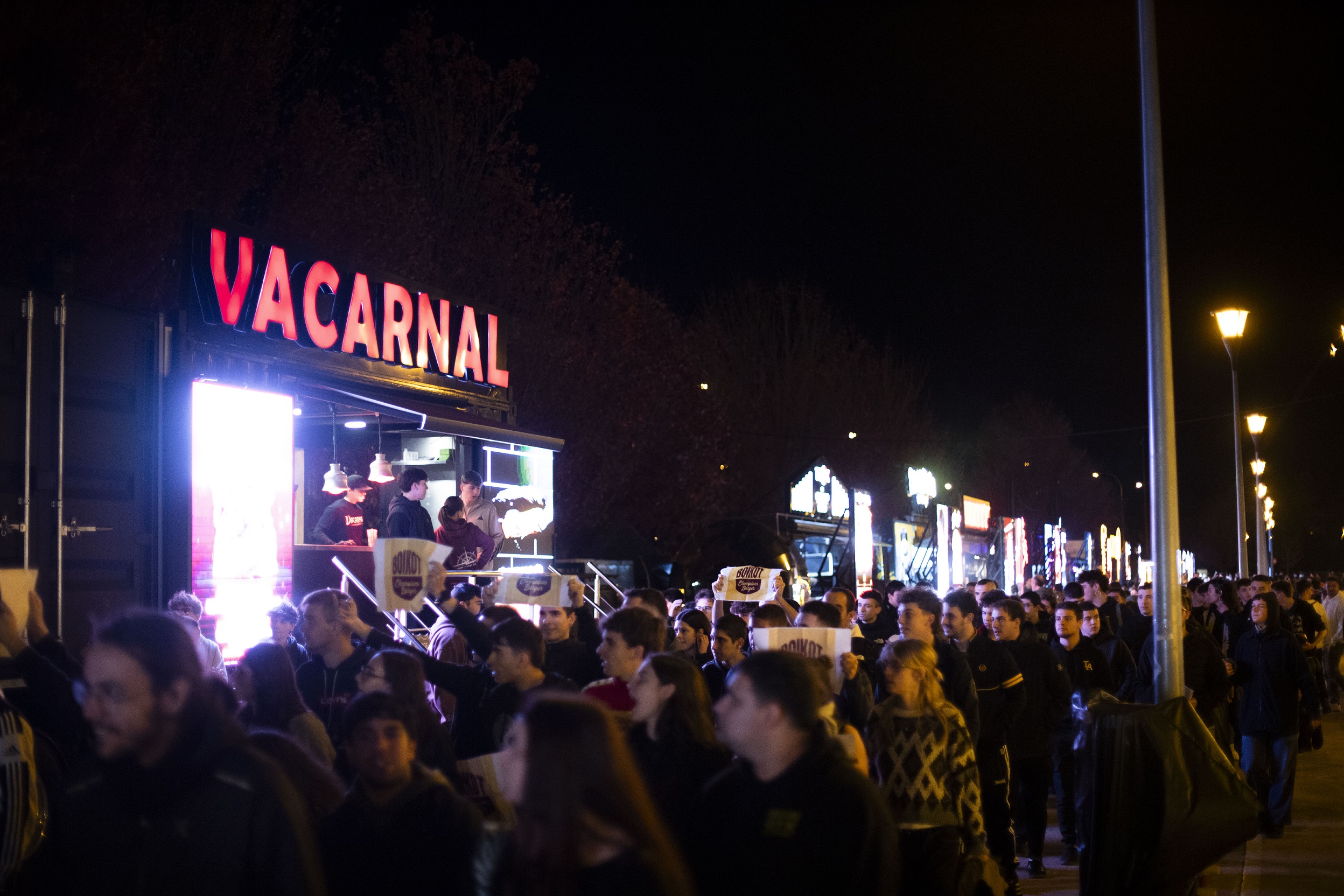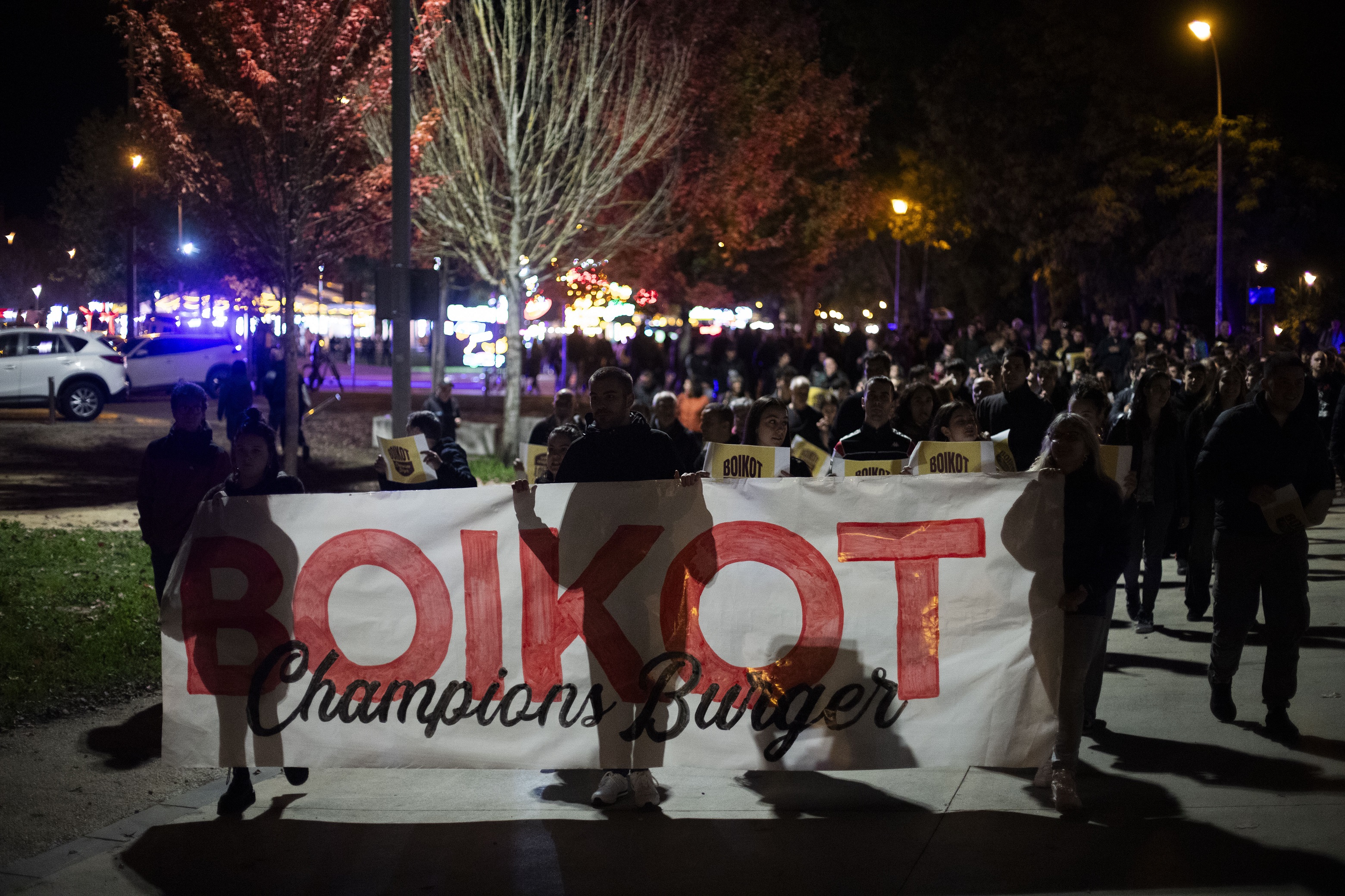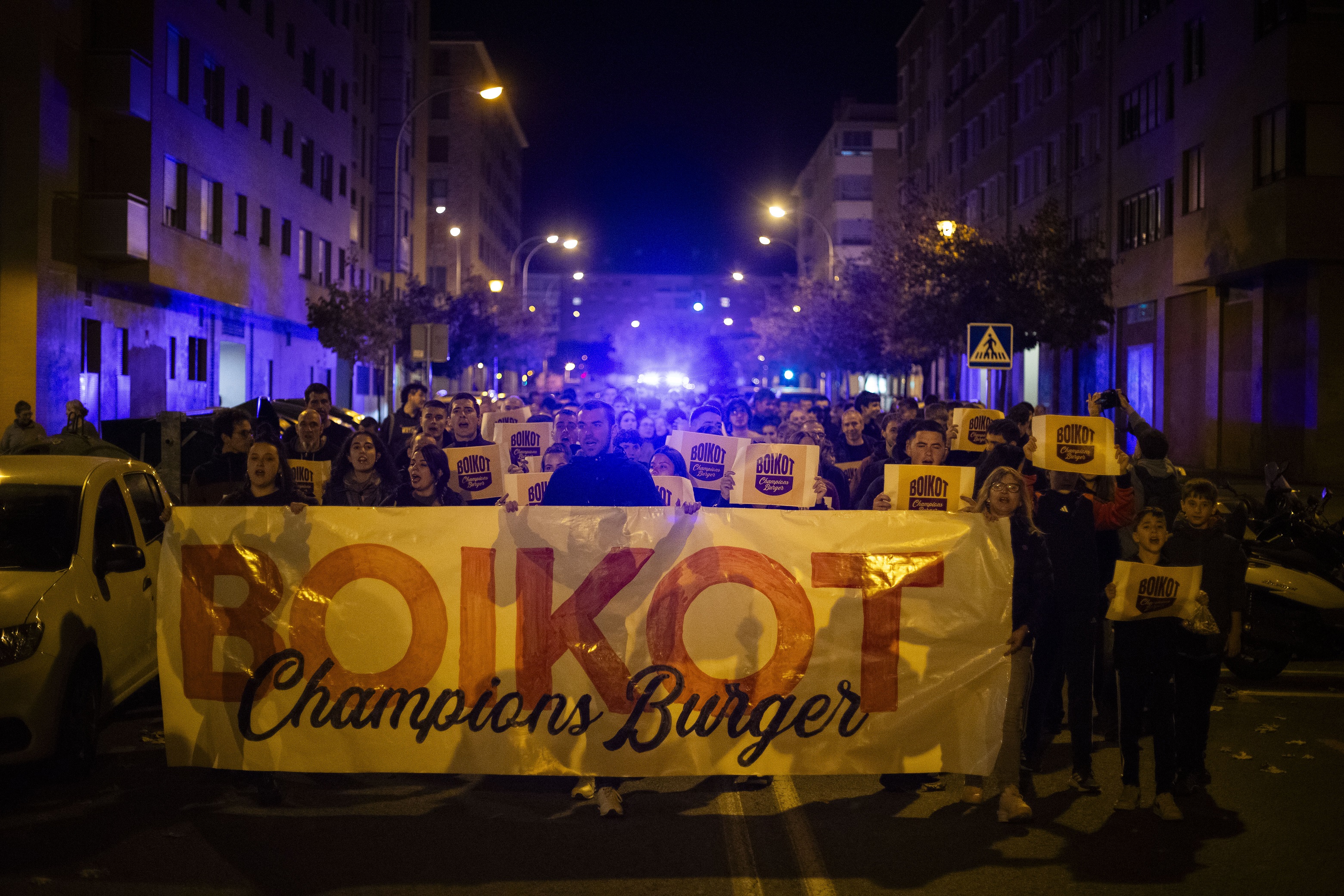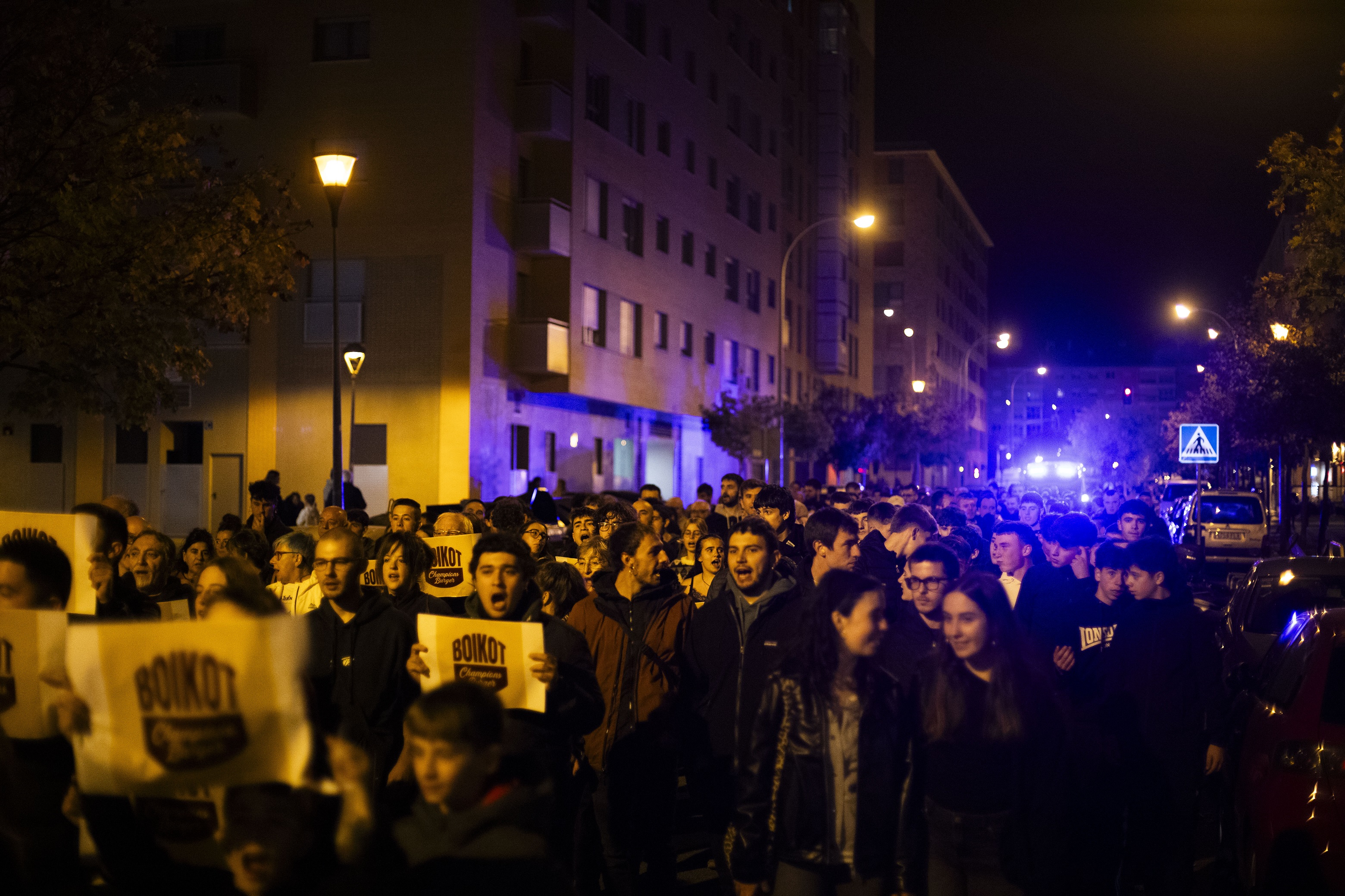 Boikot Champions Burger lelopean gurutzatu zituen auzoko kaleak manifestazioak. "Ez dugu negoziora eta turismora bideratutako hiri-eredua nahi, ez dugu espazio publikoa enpresa handien interes pribatuetara bideratzea nahi", azaldu zuten: "Runa parkean azken hilabeteetan sanferminetako barrakak, motorrak, abere-azoka, txirrindula-buelta eta oraingo hanburgesak izan ditugu. Beti ere bizilagunen ahotsak eta kexak entzun gabe".