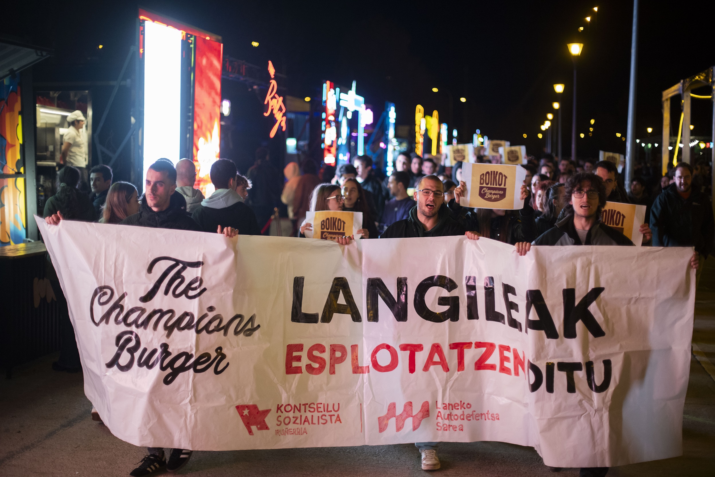 Gainera, The Champions Burgerren atzean dauden babesleak seinalatu dituzte auzokideek, "gehiengoak Israelekin harreman ekonomikoak baitituzte"; hala nola Pepsi, Heineken eta Uber enpresen bitartez. Ostiraleko manifestazioan aldarrikatu zuten horren guztiaren aurka antolatu direla aurten ehunka pertsona, eta horren erakusle direla azken egunetako deialdiak: "Auzo-batzarra, kalejira, asteartera arte jarraituko duen sinadura-bilketa, propaganda auzotik…".