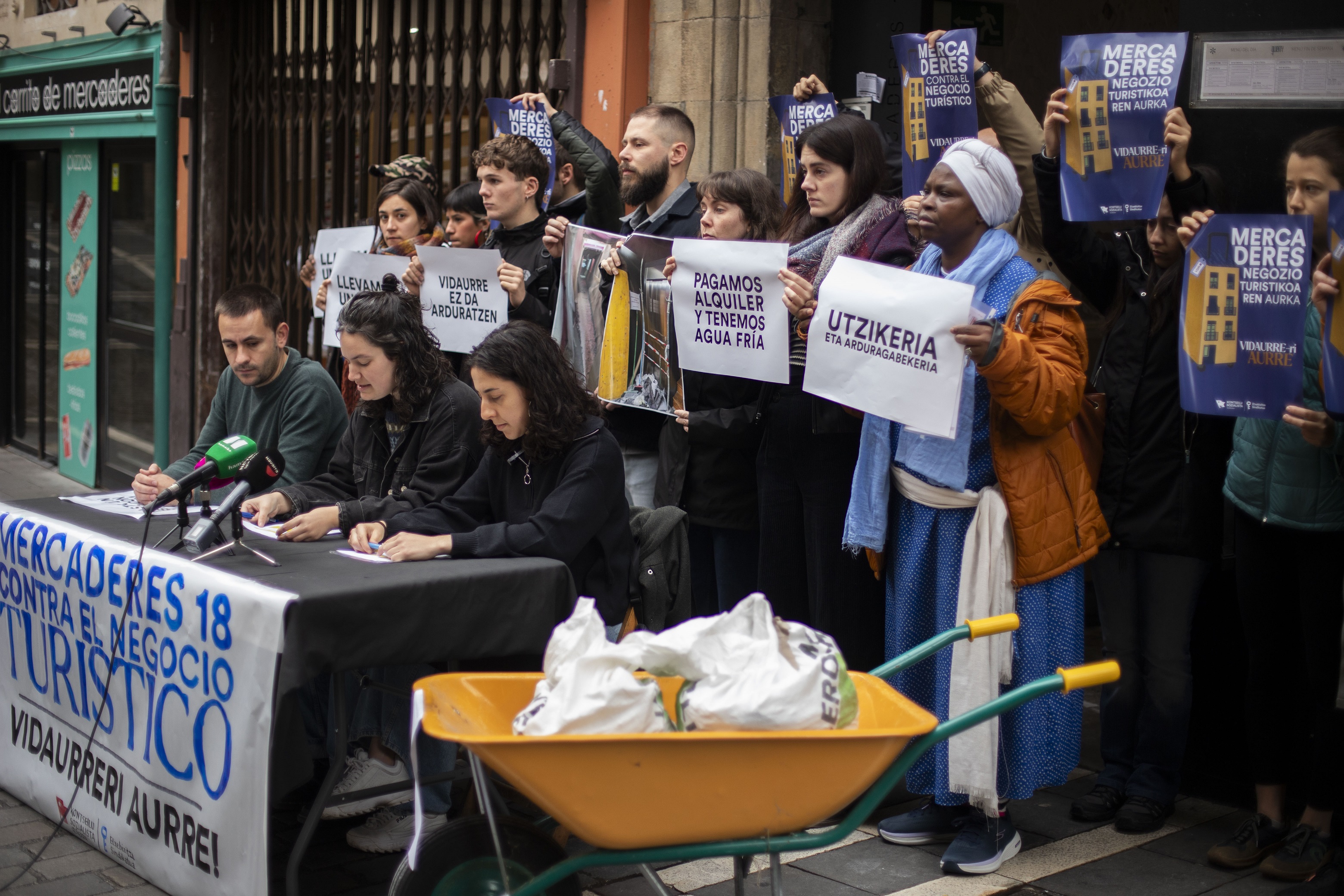 Agerraldi bat egin dute gaur Iruñeko (Nafarroa) Alde Zaharreko Mercaderes kaleko 18. zenbakian bizi diren pertsonek, Iruñerriko Etxebizitza Sindikatu Sozialistarekin batera, euren etxea galtzeko arriskuan daudela salatzeko. Vidaurre Group enpresaren jabetzako pisu batzuetan bizi dira, baina horiek hustu eta 11 etxebizitza turistiko egin nahi ditu konpainiak. Maizterrek udan ohartarazi zuten presioa egiten ari zitzaiela enpresa, euren etxeetatik alde egin zezaten, eta orain jakinarazi dutenez, euren etxeei erabilera turistikoa emateko lizentziak lortu ditu jada etxejabeak.