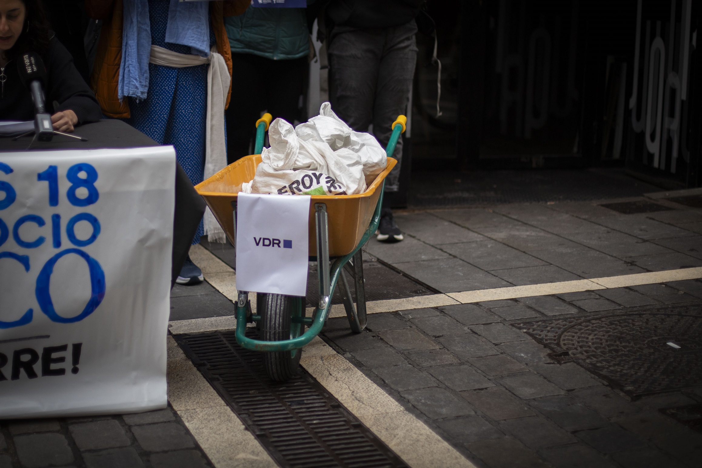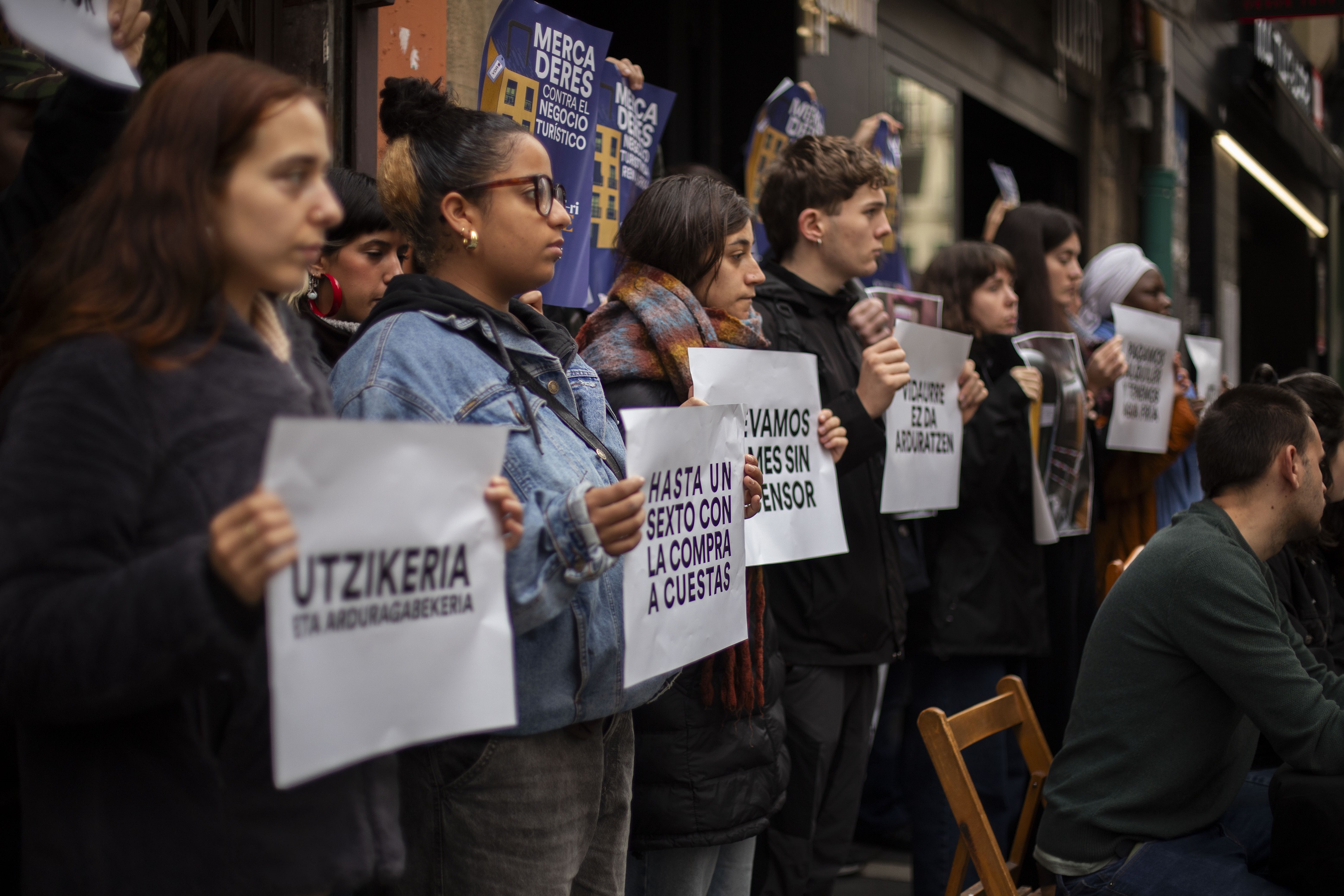 "Mercaderes 18ko bizilagunok antolatzea eta Iruñerriko Etxebizitza Sindikatu Sozialistarekin batera enpresaren jazarpen inmobiliarioko praktikak salatzea erabaki dugu", aldarrikatu dute gaurkoan. Horiek horrela, nabarmendu dute, euren "egoera partikularraz harago", "turismoaren negozioak ondorio kaltegarriak dakarkizkiola langile-klase osoari eta inguruneari, bereziki Alde Zaharra bezalako auzoetan".