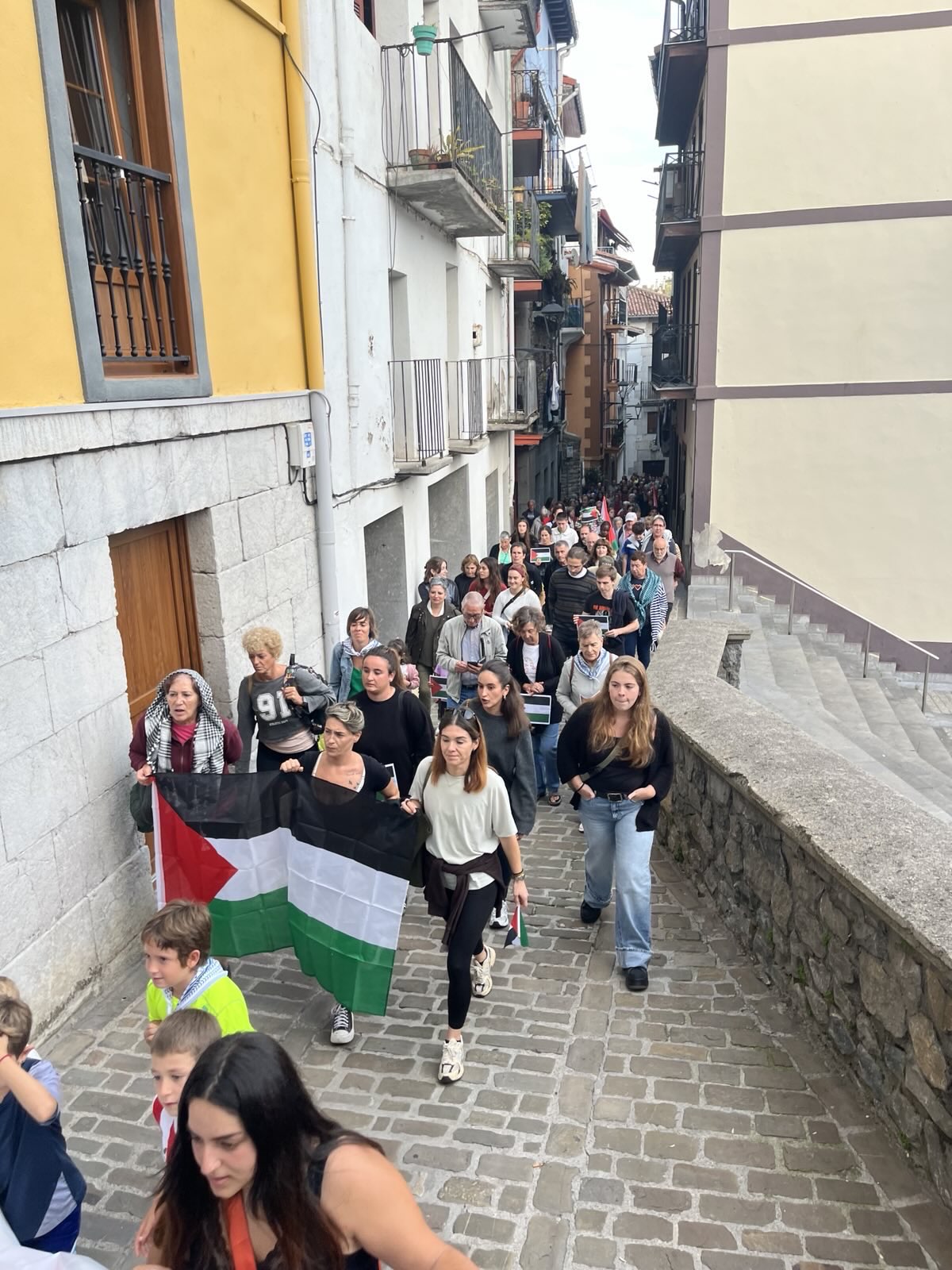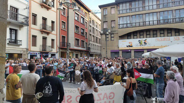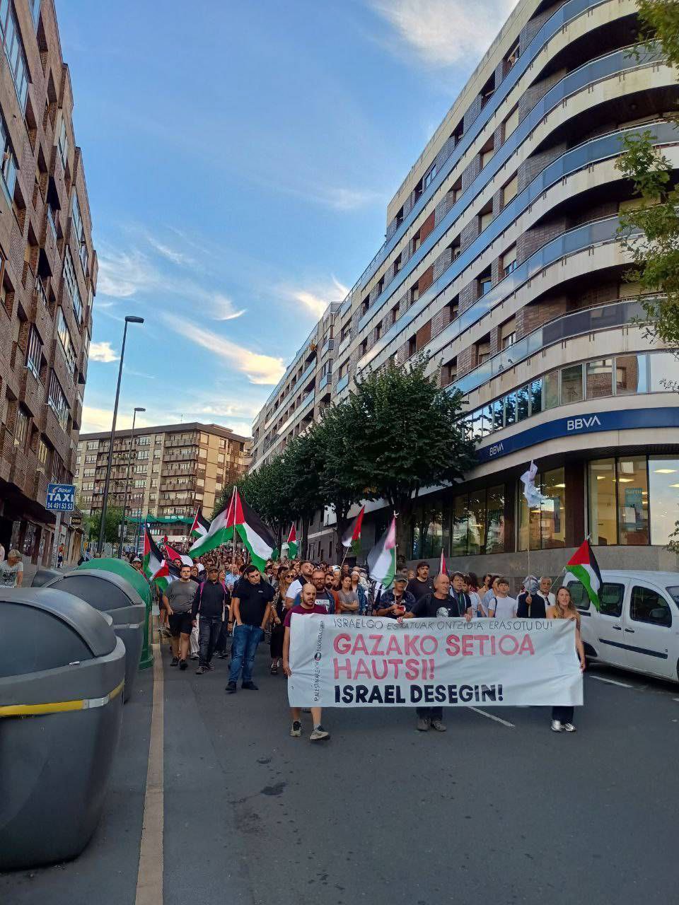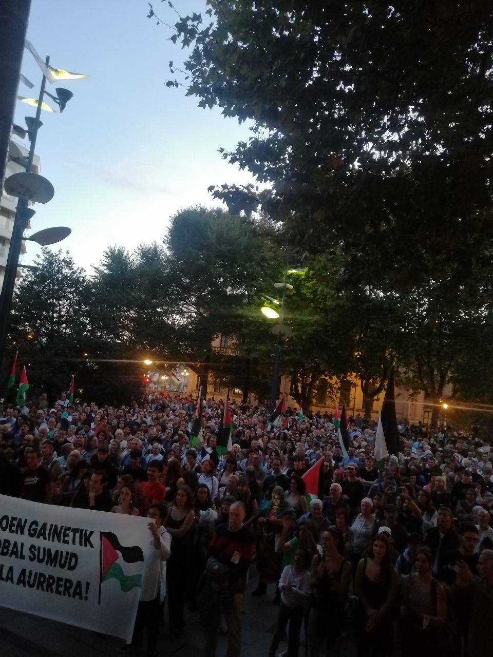 "Bada garaia, estatu terrorista desagerrarazteko bidean, Israelekin harreman oro eteteko; salerosketa-akordio oro, harreman diplomatiko oro, kirol-ekitaldi orotatik kanporatzeko", aldarrikatu zuen berriz Palestinarekin Elkartasunak.