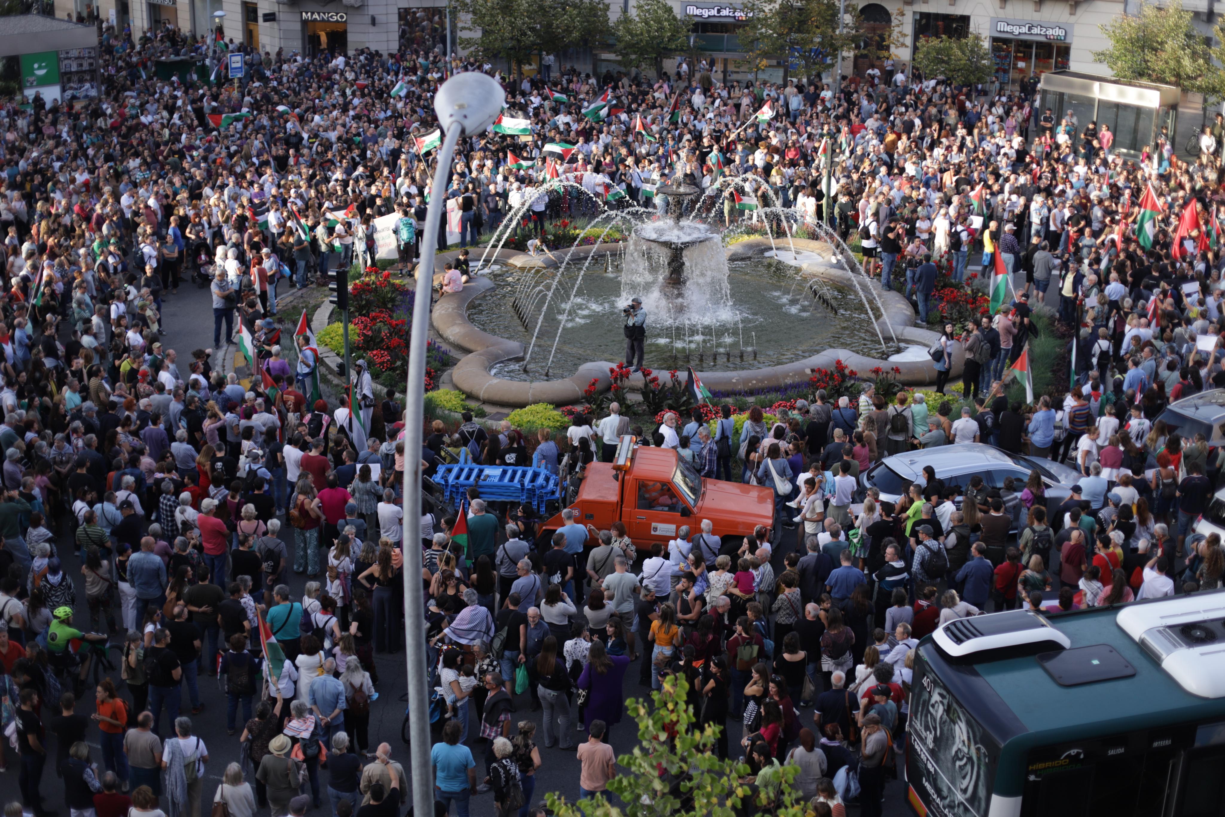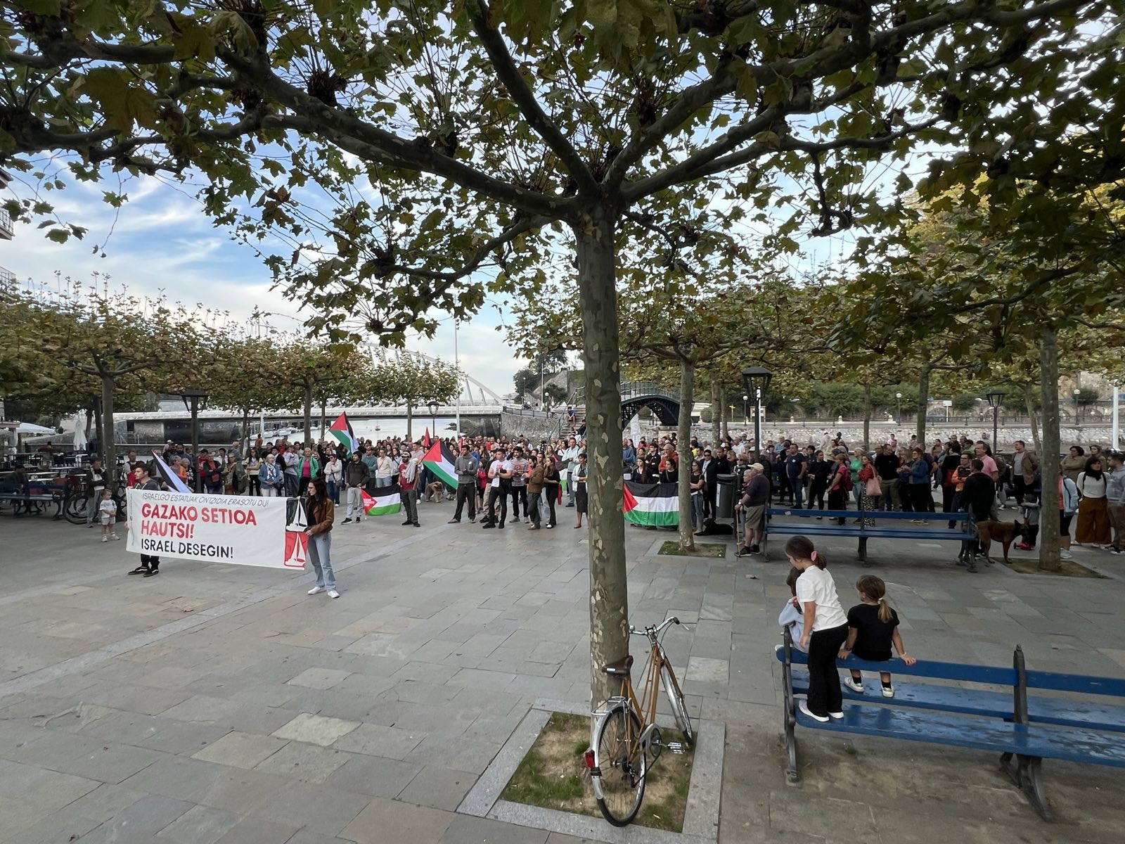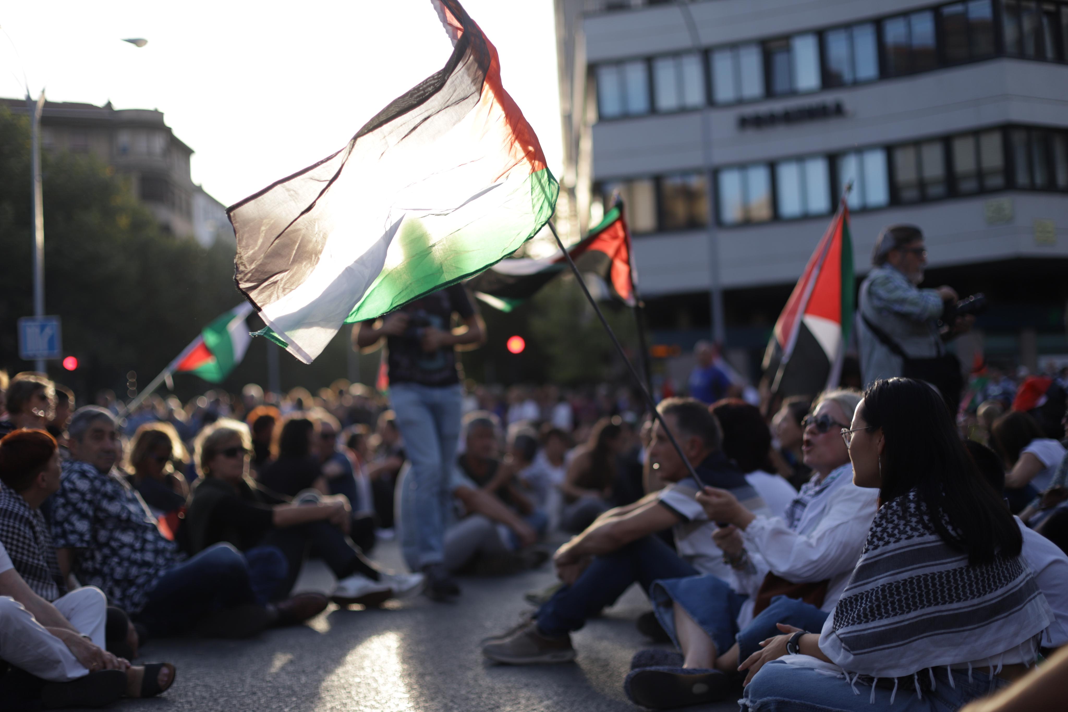 "Bada garaia, estatu terrorista desagerrarazteko bidean, Israelekin harreman oro eteteko; salerosketa-akordio oro, harreman diplomatiko oro, kirol-ekitaldi orotatik kanporatzeko", aldarrikatu zuen berriz Palestinarekin Elkartasunak.