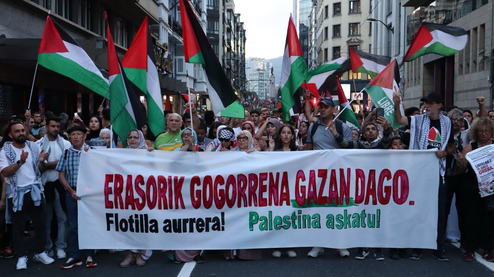 Israelgo Estatuko indarrek herenegun blokeatu zuten Global Sumud Flotilla, Gazako Zerrendan korridore humanitario bat ireki nahi zuen ontzidia, eta ontzidian zihoazen ehunka ekintzaileak atxilotu zituzten. Atzokoa, beraz, mobilizazio-eguna izan da nazioartean, Euskal Herrian barne. Goizean, Ikasle Abertzaleakek (IA) deituta, milaka ikaslek egin zuten greba; eta arratsaldean, Euskal Herri osoan izan ziren mobilizazioak, Palestinaren aldeko misioari elkartasuna adierazteko eta estatu sionista salatzeko.