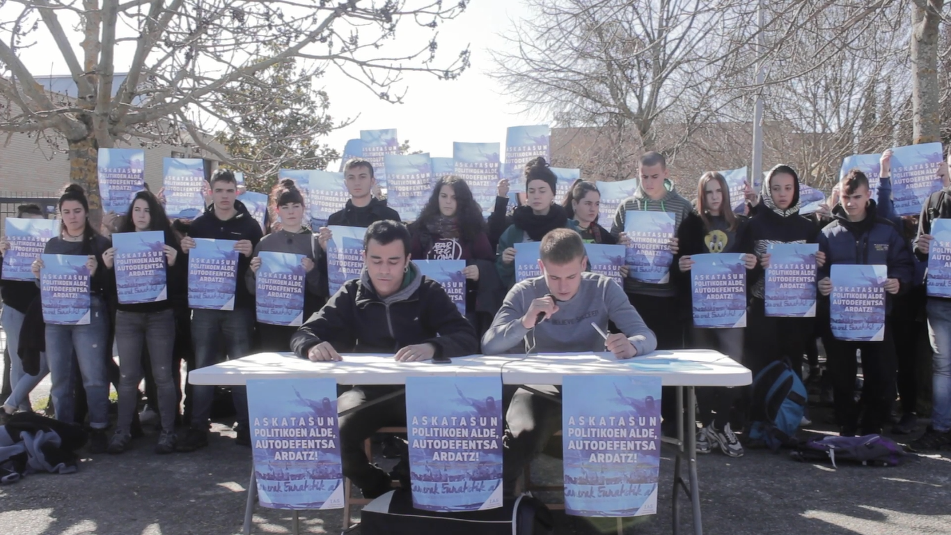 Propaganda politikoa egiteko ikastolan indarrean dagoen debekua salatzeko, propapagandaz bete zuten hezigunea bertaratutako ikasleek. Askatasuna eta Berriozar ikastetxeetan ere egoera antzekoa dela diote, baina Paz de Zigandari dagokionean, bi aldarri nagusi plazaratu berri ditu IASek: batetik, "propaganda politikoa egiteko askatasun politiko osoa", eta bestetik, "IASen jardunaren aurkako mehatxuak amaitzea".